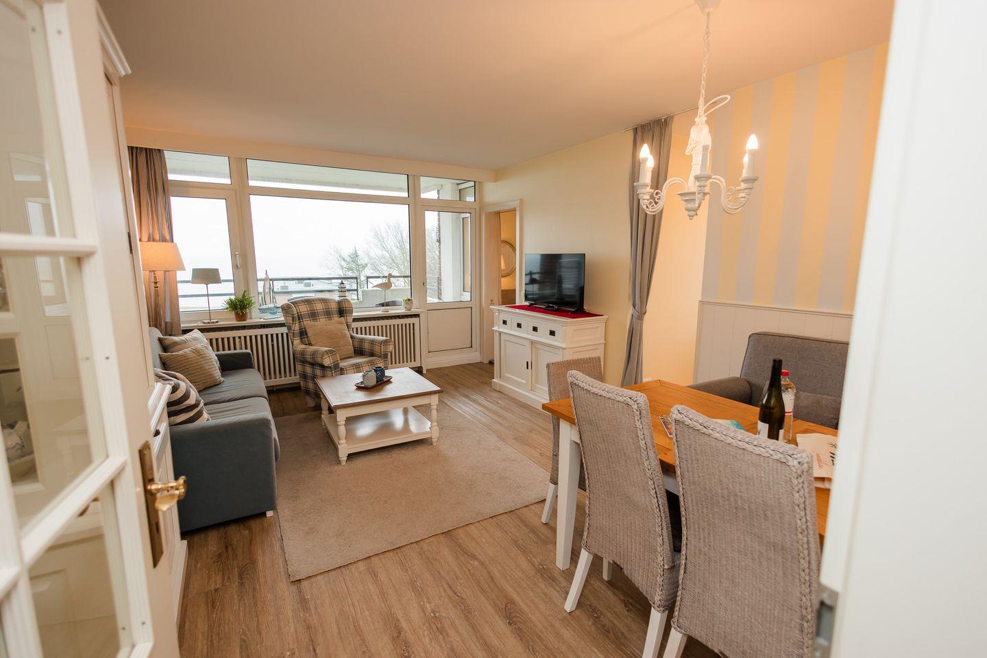 Ferienwohnung am Wyker Südstrand mit Balkon und schönem Meerblick, sowie gemeinschaftlich genutzter Sauna und Schwimmbad!
