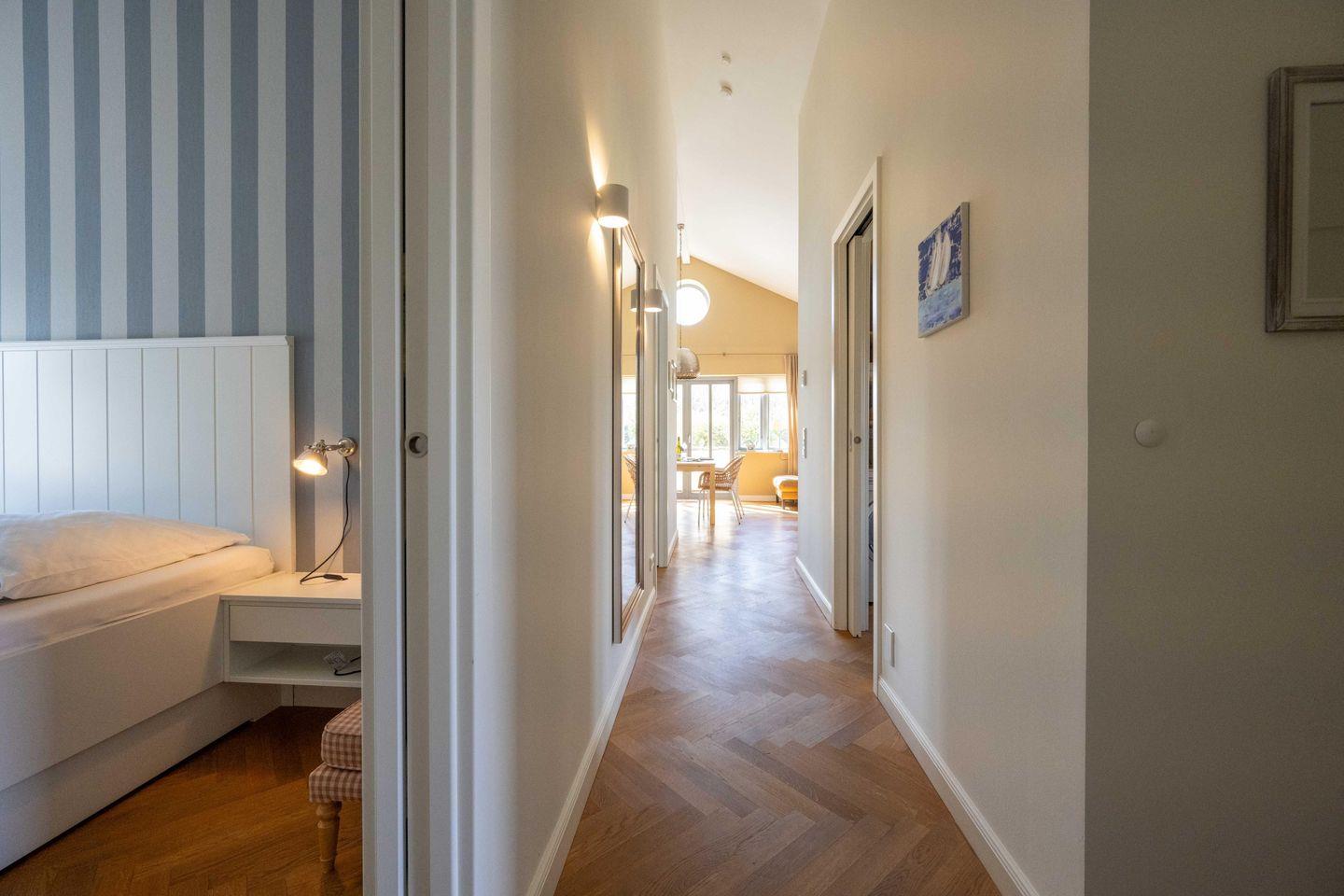 Die exklusive Ferienwohnung 1 im Haus Lillemor verfügt über 2 Schlafzimmer und 1 Bad und bietet somit komfortabel Platz für bis zu 4 Personen zuzüglich Kleinkinderaufbettung.