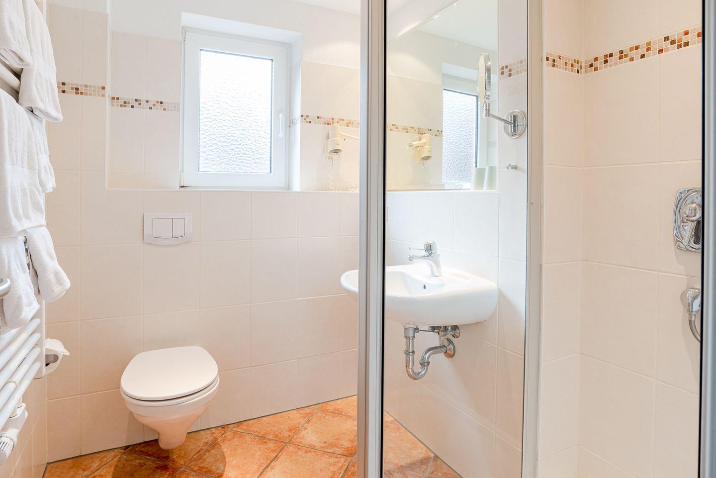Das modern eingerichtete Badezimmer mit Dusche (mit Wanne), WC, Waschbecken und Kosmetikspiegel sowie Haartrockner lässt keine Wünsche offen. Waschmaschine und Trockner stehen zur gemeinschaftlichen Nutzung bereit, wodurch der Aufenthalt auch bei längerer Dauer angenehm gestaltet wird. Neben frischer Bettwäsche und Handtüchern erhalten Sie auch Geschirrhandtücher.
