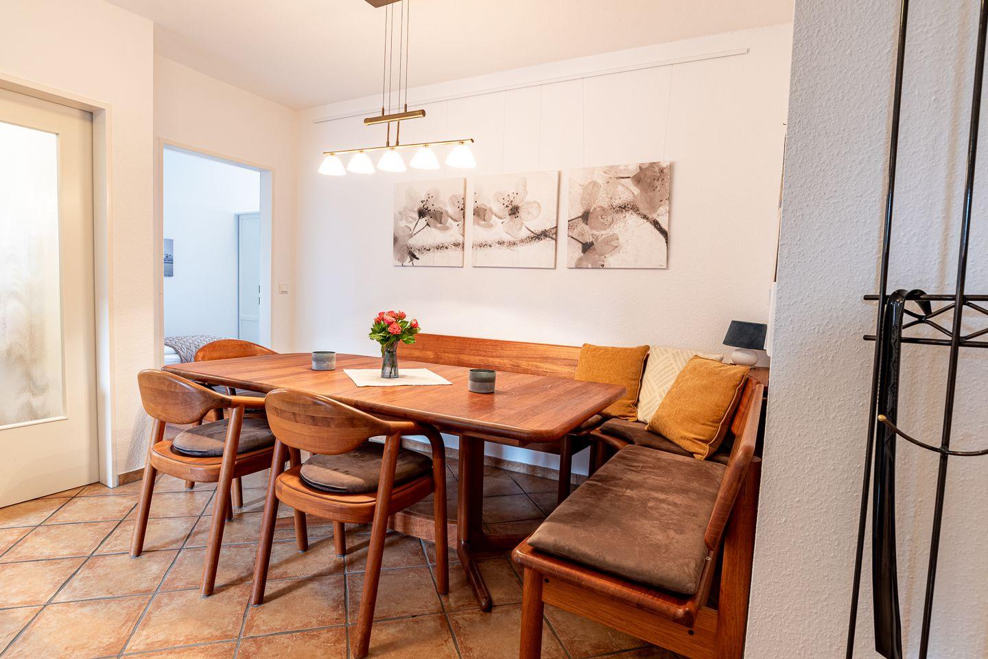 Das Hellinghaus Klippenfänger heißt Sie im Herzen von Wyk auf Föhr, in herausragender Lage direkt am Sandstrand und nur wenige Meter von zahlreichen Freizeitmöglichkeiten sowie dem Stadtkern entfernt, willkommen. Diese Unterkunft befindet sich im ersten Stock eines gepflegten Hauses und bietet mit 62 m² Wohnfläche komfortabel Platz für bis zu vier Personen. Zwei separate Schlafzimmer mit Laminatboden garantieren erholsame Nächte für Familien oder Paare, während der großzügige Wohn- und Essbereich zum Verweilen einlädt.