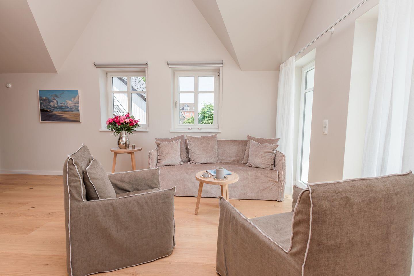 Die Ferienwohnung Sunja vereint anspruchsvolle Architektur mit stilvoller Wohnkultur – ein eleganter Rückzugsort für bis zu vier Personen, zuzüglich Kleinkinderaufbettung. Auch zwei Hunde sind in diesem exklusiven Ambiente herzlich willkommen.
