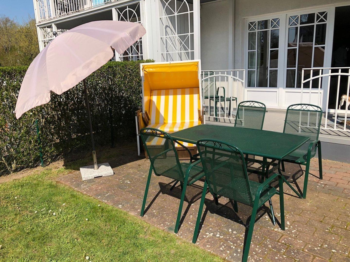 Im Außenbereich erwarten Sie Garten, Terrasse und Gartenmöbel – ergänzt durch Sonnenschirm und Strandkorb. Das eingezäunte Grundstück ist kinder- und hundesicher, was den Aufenthalt mit Nachwuchs oder Hund besonders angenehm macht. Für die Anreise mit dem Auto steht 1 kostenloser Privatparkplatz zur Verfügung.