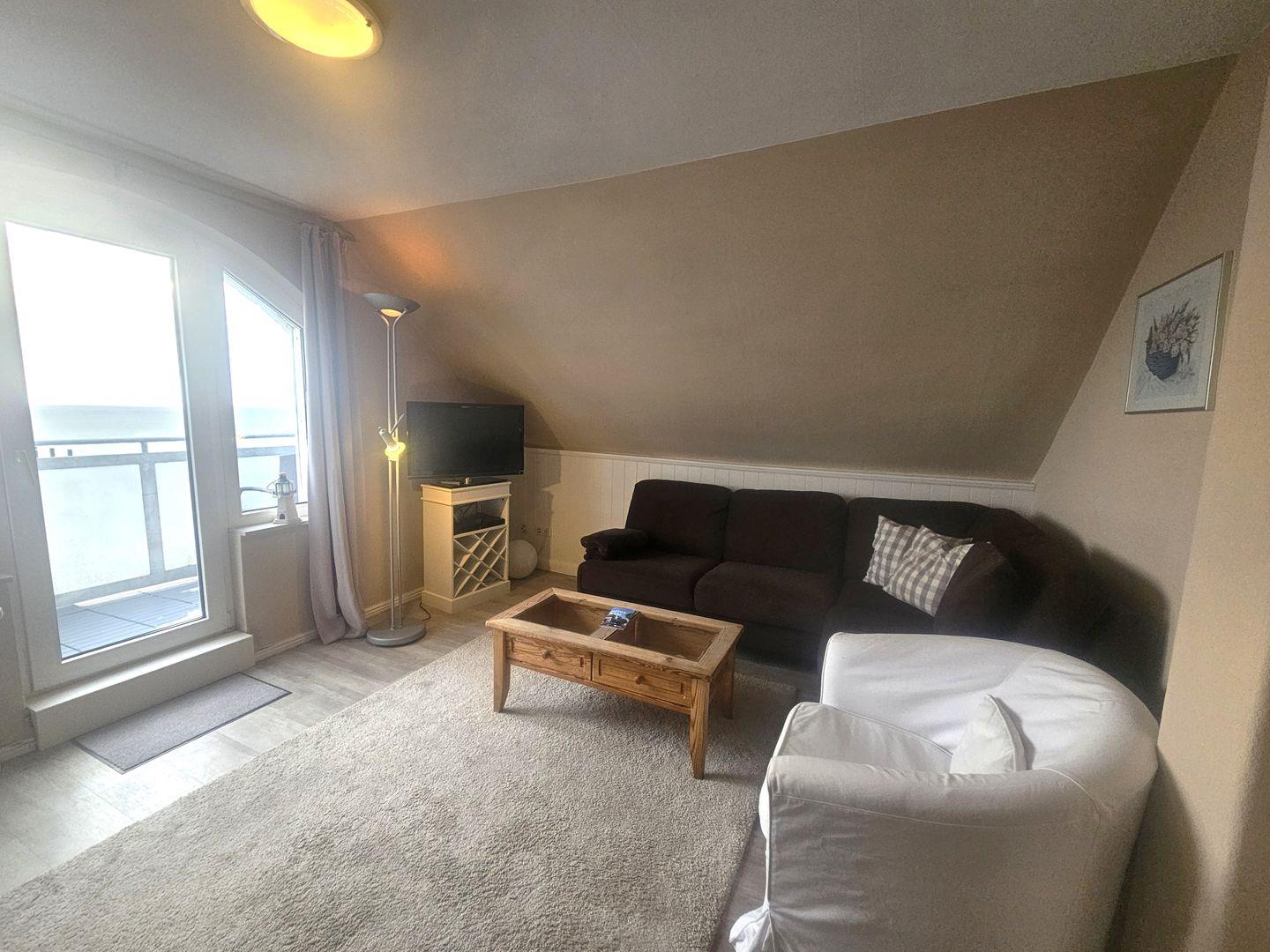 Die Promenadenblick - Wohnung 3 ist eine 34 m² große, gepflegte Nichtraucherwohnung im 3. Stock und eignet sich mit insgesamt 2 Zimmern und Schlafmöglichkeiten für 2 Personen ideal für einen entspannten Aufenthalt in Wyk auf Föhr. Dank der direkten Lage am Meer genießen Sie bereits nach wenigen Schritten die Küste: Strand und Meer sind jeweils nur 50 m entfernt. Besonders hervorzuheben ist der außergewöhnlich gute Meerblick, den Sie auch vom Balkon aus auf sich wirken lassen können. Unser Tipp: vergessen Sie das Fernglas nicht!