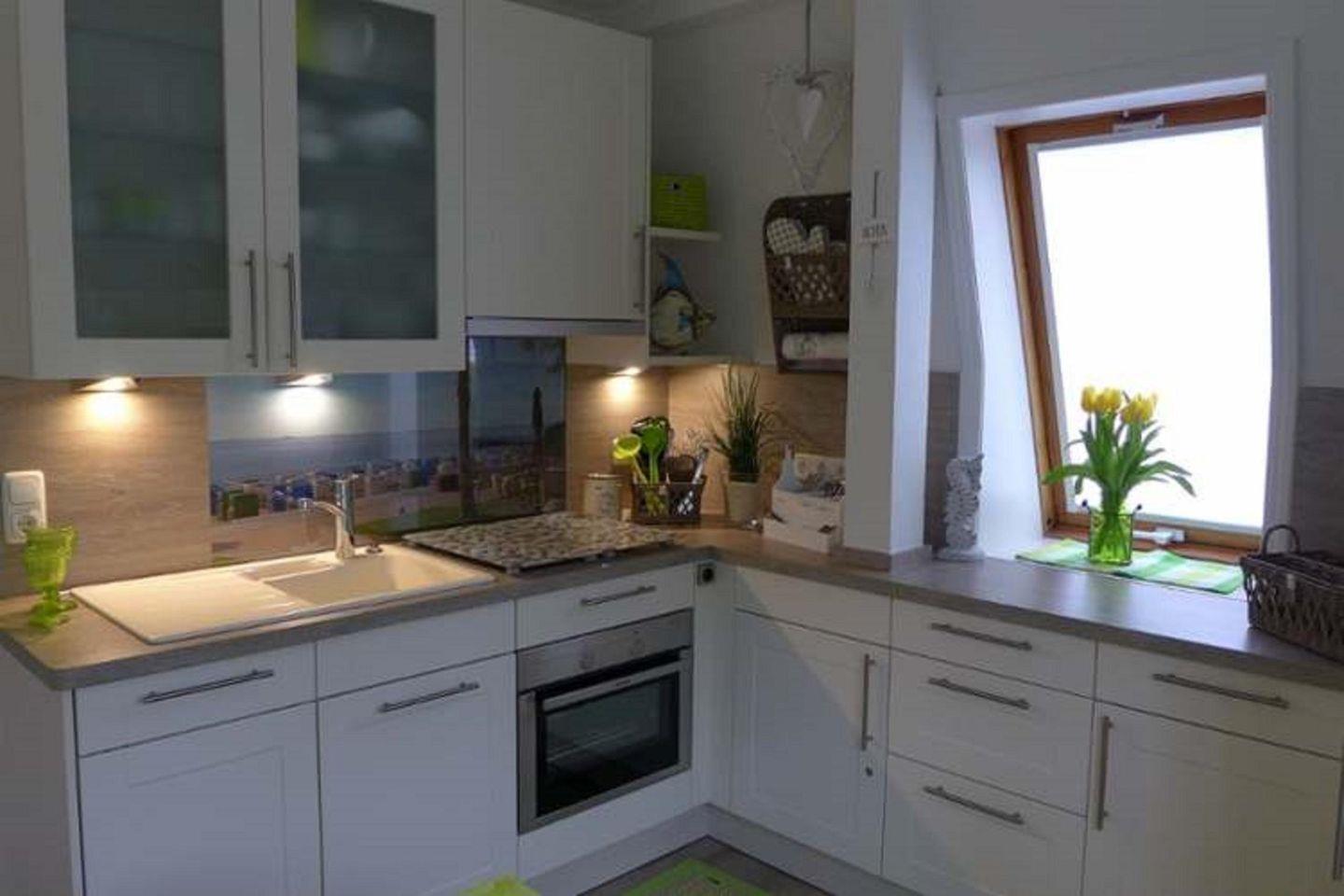 Die geschlossene Küche mit Esstisch ist vollständig ausgestattet, sodass Sie Mahlzeiten flexibel selbst zubereiten können: Herd mit 4-Platten-Kochfeld, Backofen, Mikrowelle, Kühlschrank mit Gefrierfach (Fach im Kühlschrank), Spülmaschine sowie Toaster, Wasserkocher und Kaffeemaschine stehen bereit. Geschirr, Besteck und Küchenutensilien sind vorhanden; ein eigener Essbereich mit Esstisch rundet den Küchenkomfort ab.