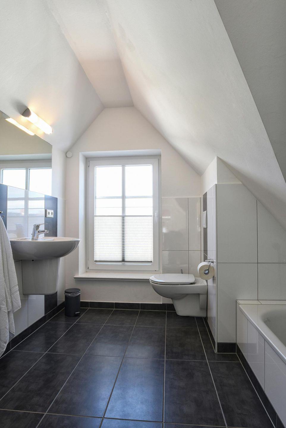 Die Stadtwohnung 3 erstreckt sich als einzige Stadtwohnung über 3 Etagen und nimmt das gesamte mittlere drittel des Hauses der Hafenstraße 10A ein. Sie verfügt über ein kombiniertes Wohn / Esszimmer mit einer Küchenzeile mit Einbauküche, 2 separate Schlafräume, 2 Bäder, ein zusätzliches Gäste-WC, eine Süd-Terrasse und einen Süd-Balkon nebst Garten. Außerdem befindet sich im Schlafzimmer in der dritten Etage ein begehbarer Kleiderschrank. Zudem stehen 8 videoüberwachte PKW- Stellplätze für 9 Stadtwohnungen direkt am Haus zur Verfügung.