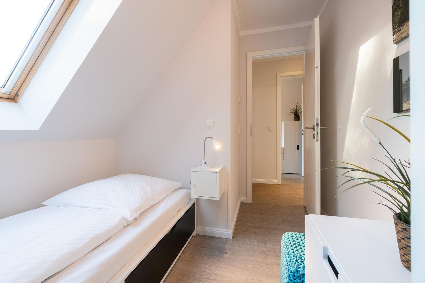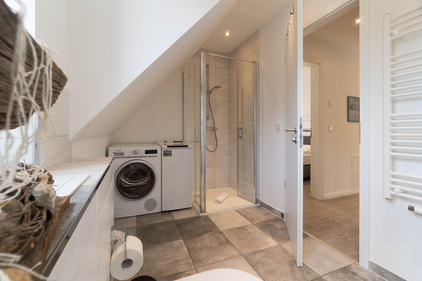 Das Hausteil hat 4 Schlafräume und einen schönen Balkon. Auch ein Parkplatz steht am Ferienhaus zur Verfügung. Das Hausteil erstreckt sich über das Erdgeschoss, 1. Obergeschoss bis zum 2. Obergeschoss. Dieses Hausteil hat eine geschmacksvolle und moderne Ausstattung und ist mit ihren Treppengittern sehr kinderfreundlich eingerichtet.