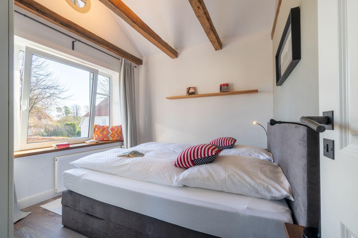 Die Idee: Eine exklusive Mischung von historischen Elementen und modernem Wohnkomfort. Dies ist den Eigentümern des Ferienhauses durchaus sehr gut mit der Renovierung zum Frühjahr 2018 gelungen. Aufgearbeitete Holzbalken, Deckenhöhen bis unters Dach, teilweise Backsteinwände und eine moderne Landhaus-Küche sowie Smart-TVs in drei Schlafräumen und dem Wohnbereich vollenden die Idee bis ins kleinste Detail.