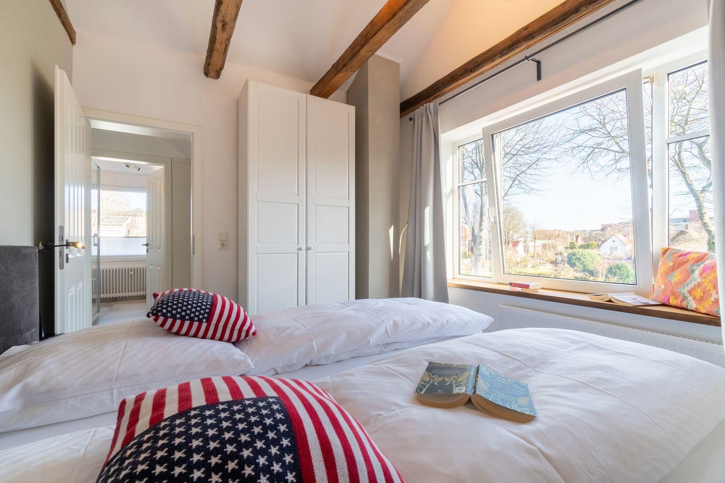 Moderne, sehr geschmackvoll aufeinander abgestimmte Ausstattung trifft in diesem einzigartigen Ferienhaus in bester Lage auf historische Elemente, die bei der Sanierung im Jahr 2017 bewusst erhalten wurden - das ist Lifestyle pur! Das Haus am Park bietet verteilt über zwei Etagen und einem Mezzanin nur für unsere liebsten, unsere Kinder, Platz für acht Personen. Für die kälteren Tage des Jahres findet unser Feriengast im Erdgeschoss eine Sauna. Im Sommer ist das Haus, bedingt durch die Lage, ebenso perfekt. Der beliebte Wyker Strand mit der Mittelbrücke und auch die Strandpromenade mit den zahlreichen Einkaufsmöglichkeiten und Cafés sowie den kleinen, urigen Straßen und historischen Friesenhäusern ist nur wenige Gehminuten entfernt.