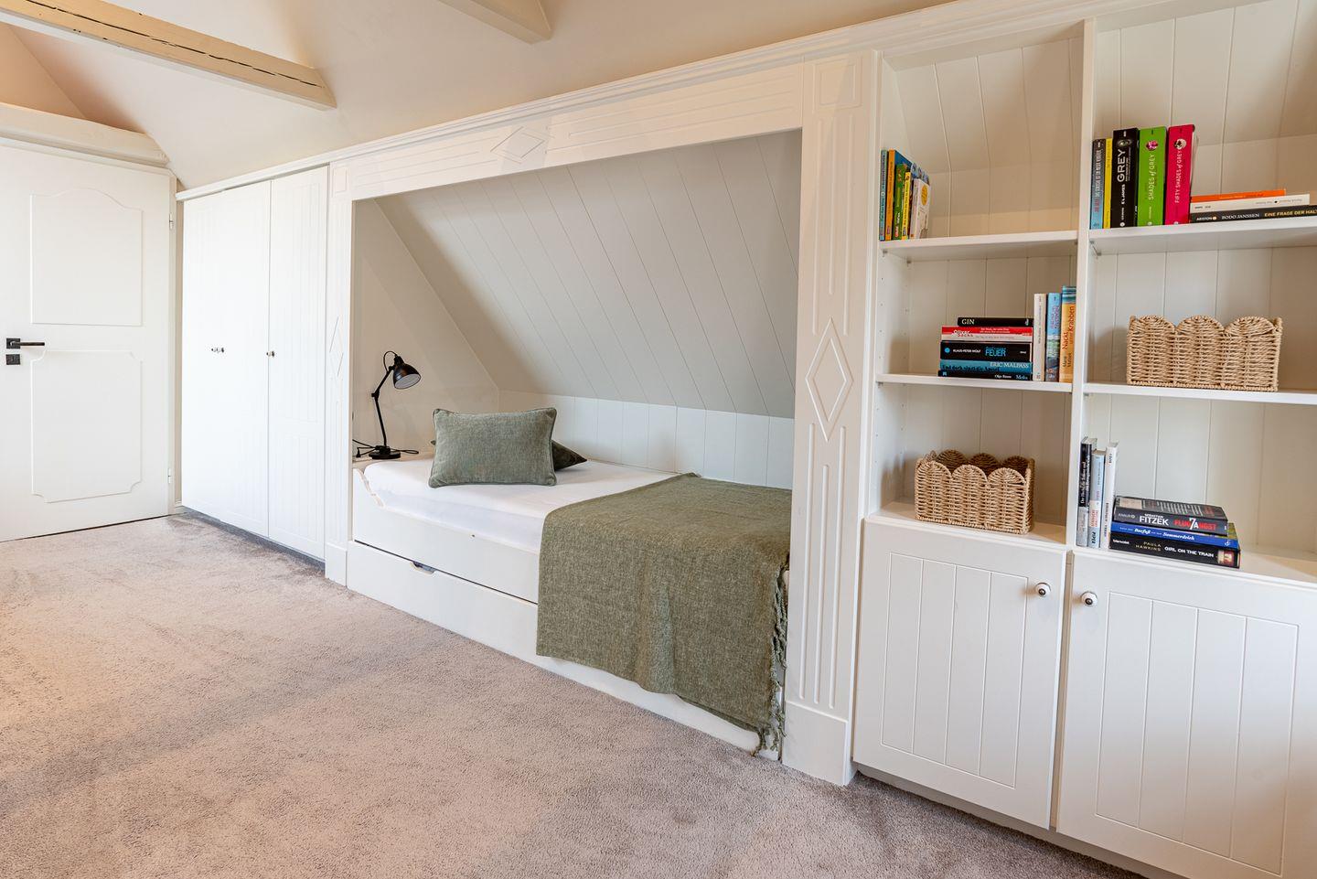 Im exklusiven Joellas Hüs finden bis zu 6 Personen komfortabel Platz. In dem freistehenden Ferienhaus befinden sich einige, nicht selten sehr hochwertige Highlights, wie beispielsweise der Mylin-Kachelofen im Esszimmer, die ausgewählte, hochwertige Möblierung und die originalen Delfter Kacheln in der Küche oder auch der malerische Innenhof, der nur dieser Immobilie zur Verfügung steht. Insgesamt verfügt das Joellas Hüs über drei Schlafzimmer und zwei Duschbäder.