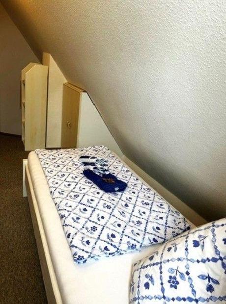 Das Ferienquartier 'Nordlicht' in Wyk bietet eine komfortable Unterkunft in zentraler, strandnaher Lage. Die Wohnung befindet sich in der ersten Etage und umfasst ein Schlafzimmer mit zwei Einzelbetten sowie einen geräumigen Wohnbereich, der mit einem bequemen Sofa ausgestattet ist. Der Wohnbereich lädt zum Entspannen ein und ist zudem mit SAT-TV und einem Radio versehen.