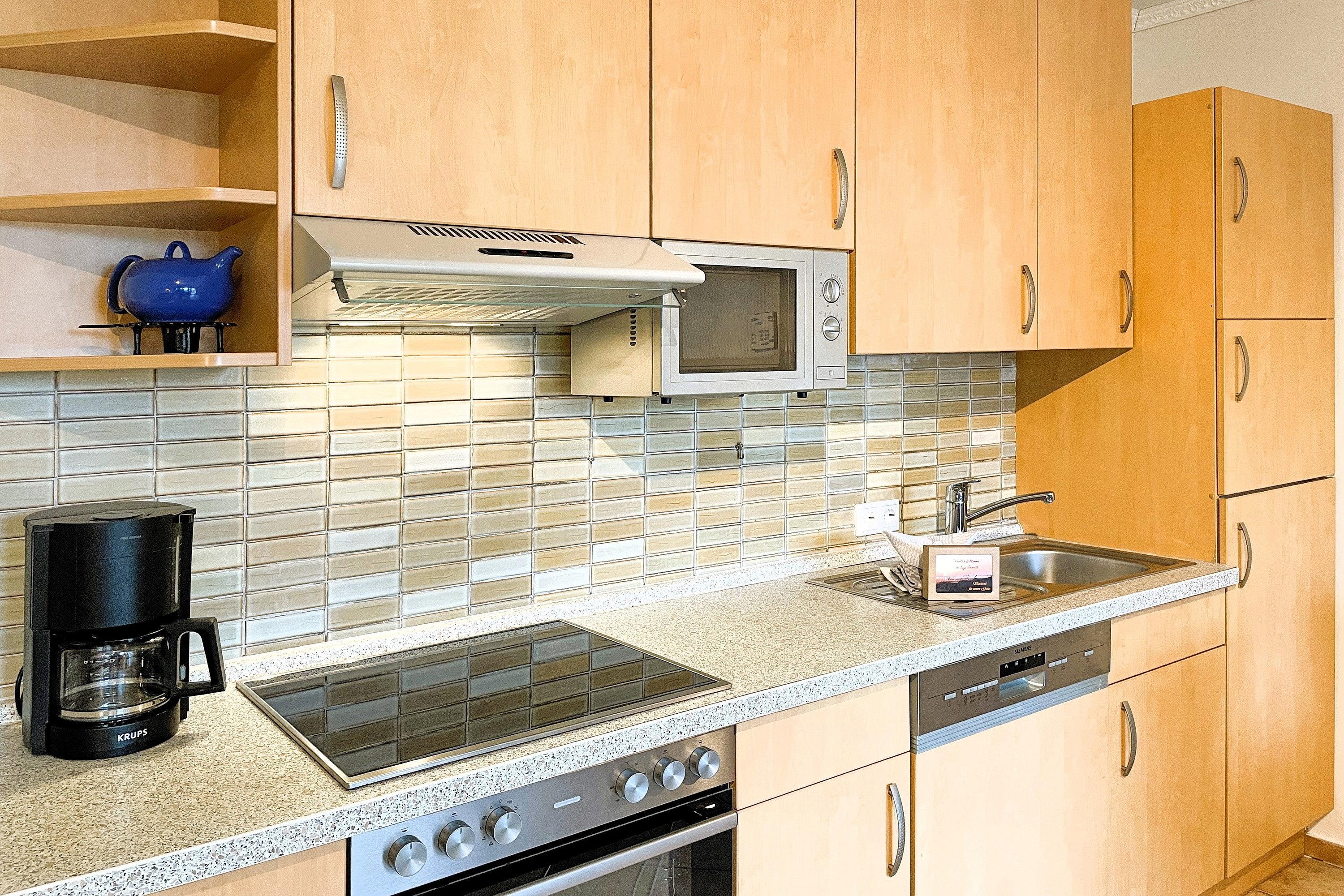 Entdecken Sie unsere großzügige Ferienwohnung, die ideal für einen komfortablen Familienurlaub bis zu 5 Personen ist. Die einzelnen Zimmer der hellen Ferienwohnungen sind alle vom Flur aus begehbar: Ein einladendes Wohnzimmer mit einer voll ausgestatteten Küchenzeile und einer bequemen Essgruppe bietet reichlich Platz und eignet sich ideal für gemütliche Film- oder Spielabende. Von hier aus gelangen Sie auf die nach Süden gelegene windgeschützte Loggia.