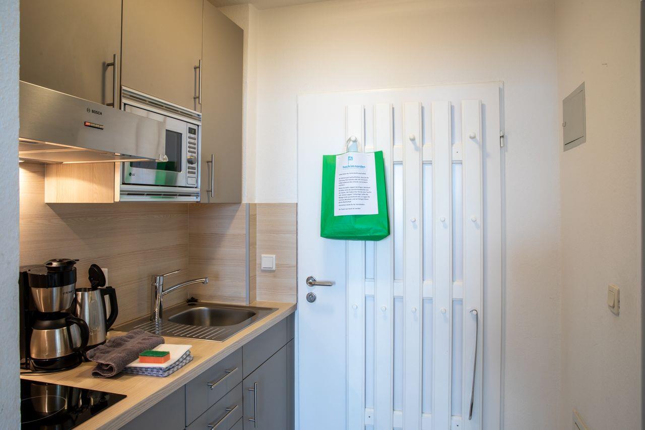 Die Wohnung besteht aus einem Wohnschlafraum mit einem Doppelbett (180x200), Duschbad und Küchenzeile. Ebenso hat diese Wohnung eine große Tür und Fenster mit Balkon zum Wasser, mit uneingeschränkten Meerblick. W-Lan, Satelliten-TV und CD-Player und Blue-Ray, Radio sind natürlich vorhanden. Bei Bedarf stellen wir Ihnen gern ein Kinderreisebett und/ oder einen Hochstuhl kostenfrei bereit. Auf Anfrage ist die Mitnahme eines Hundes möglich.
