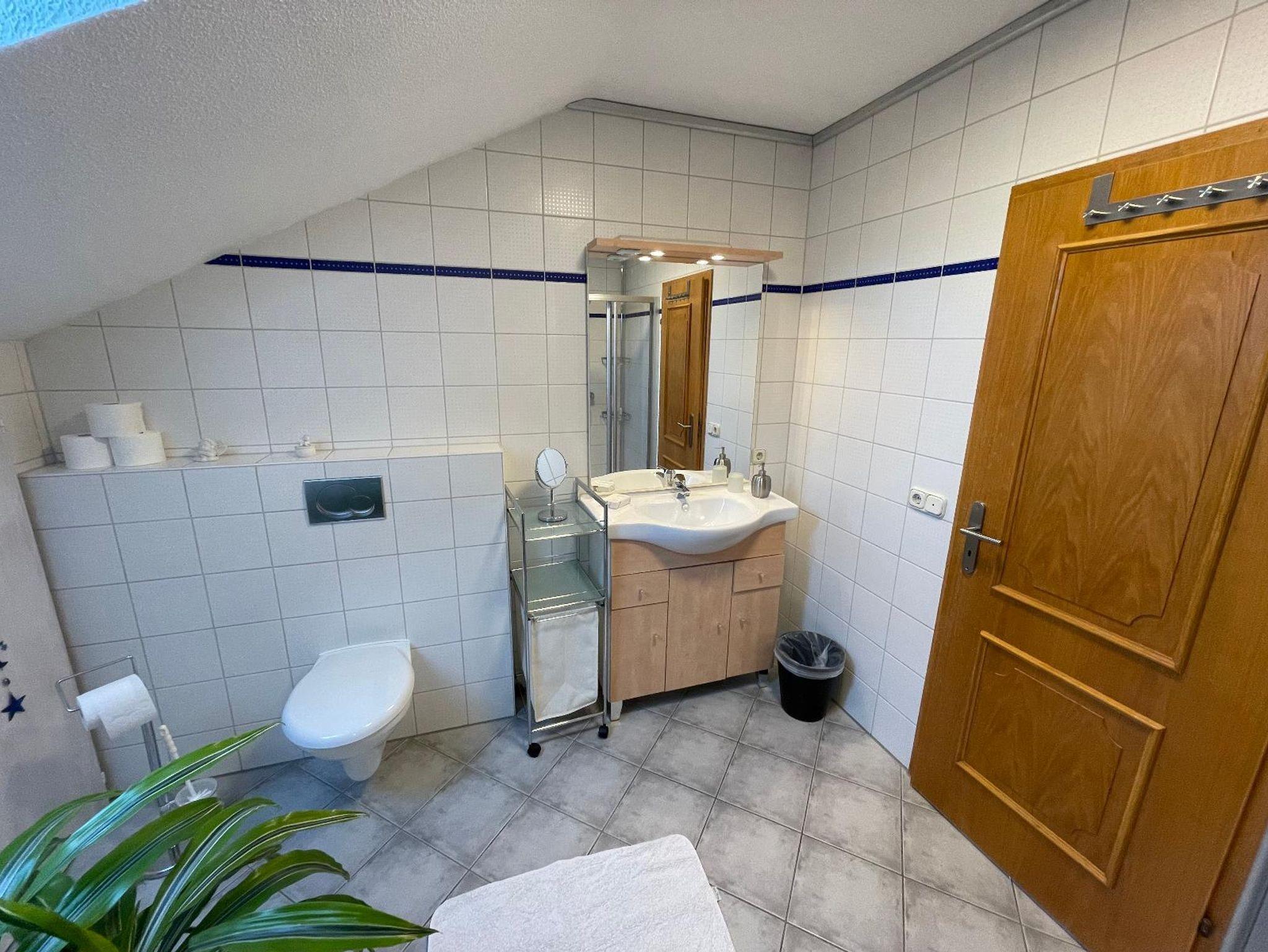 Badezimmer mit Dusche, WC, Bidet, Waschmaschine