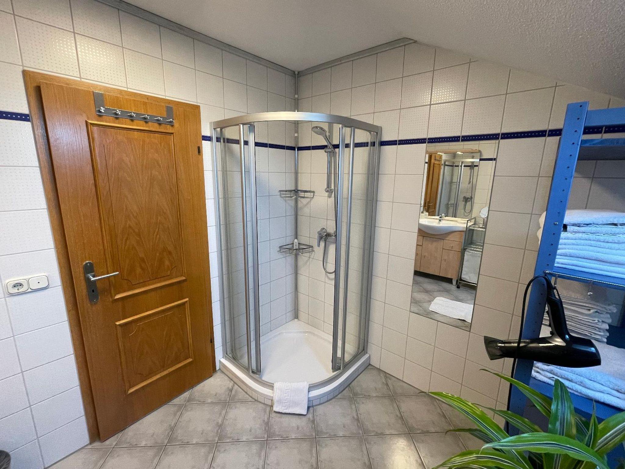 Privatzimmer 35m² für 1-4 Pers., Doppelbett, Queensize Bett (1,40 x 2,0m) als tt, eigenes Badezimmer mit Dusche und WC, SAT-TV, kleiner Kühlschrank, Kaffemaschine im Zimmer,