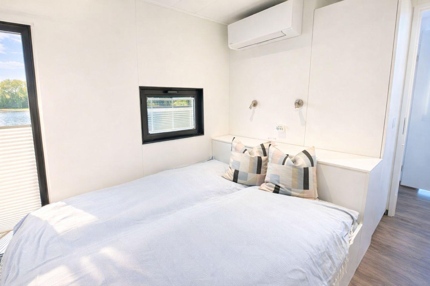 Das Floatinghouse verfügt über 1 Badezimmer mit Dusche, WC, Waschbecken, Fenster und warmem Wasser; insgesamt gibt es 1 Dusche. Für angenehmes Raumklima sorgen Elektro-Heizung sowie eine Klimaanlage in allen Aufenthaltsräumen. Ein Kaminofen ergänzt das Wohngefühl, während Fliegengitter, Sonnenschutz und Sichtschutz für alle Fenster den Aufenthalt zusätzlich komfortabel machen.