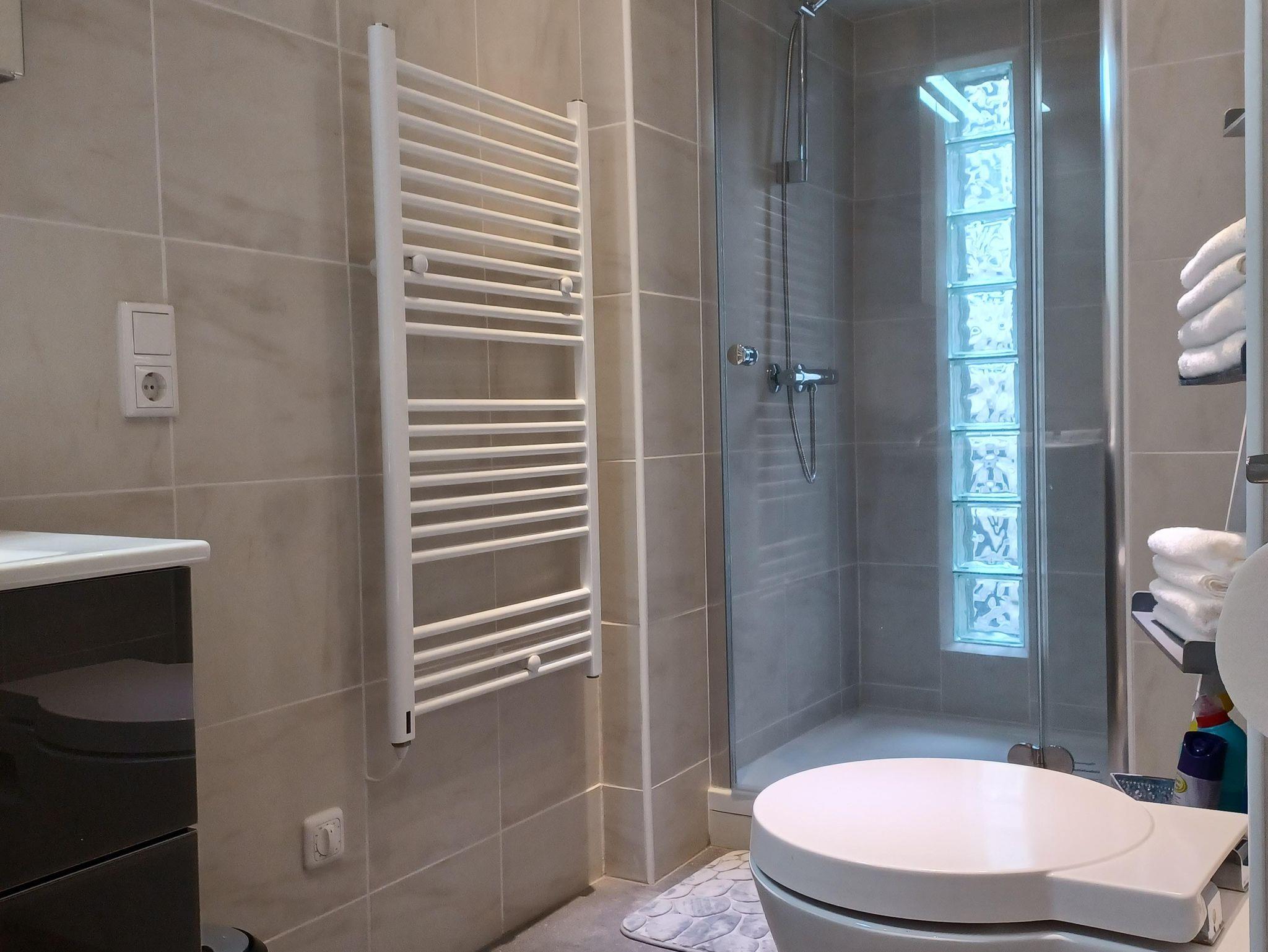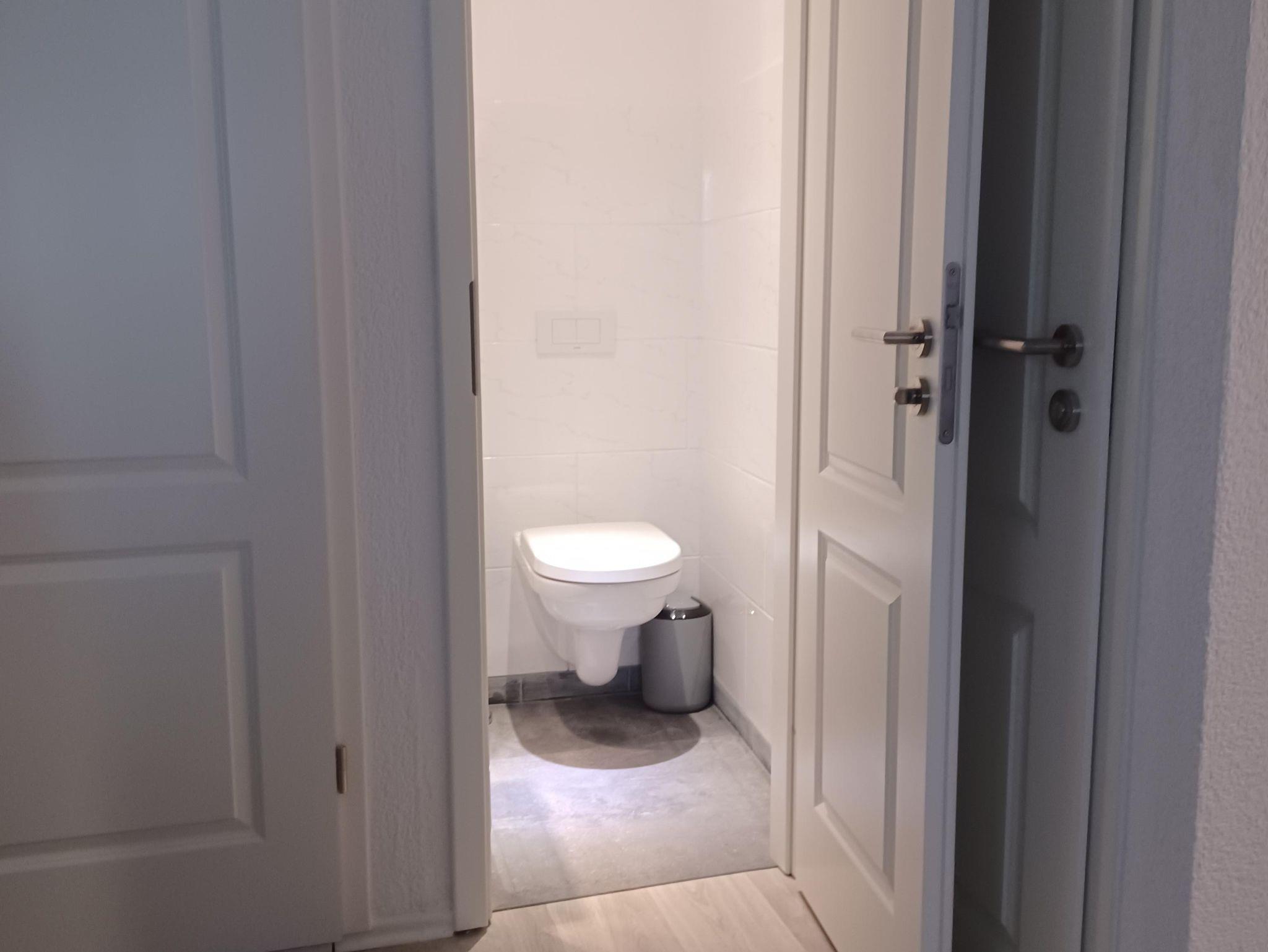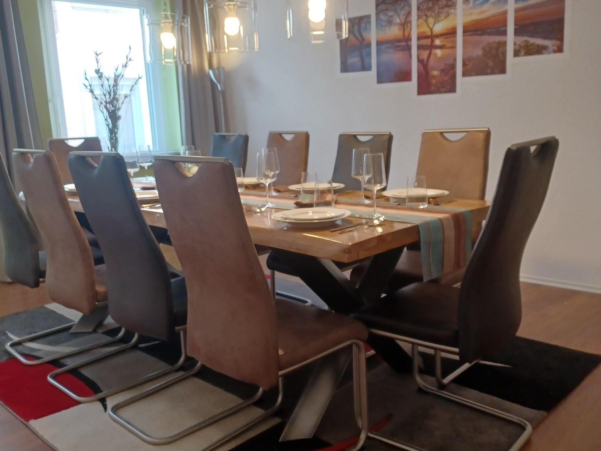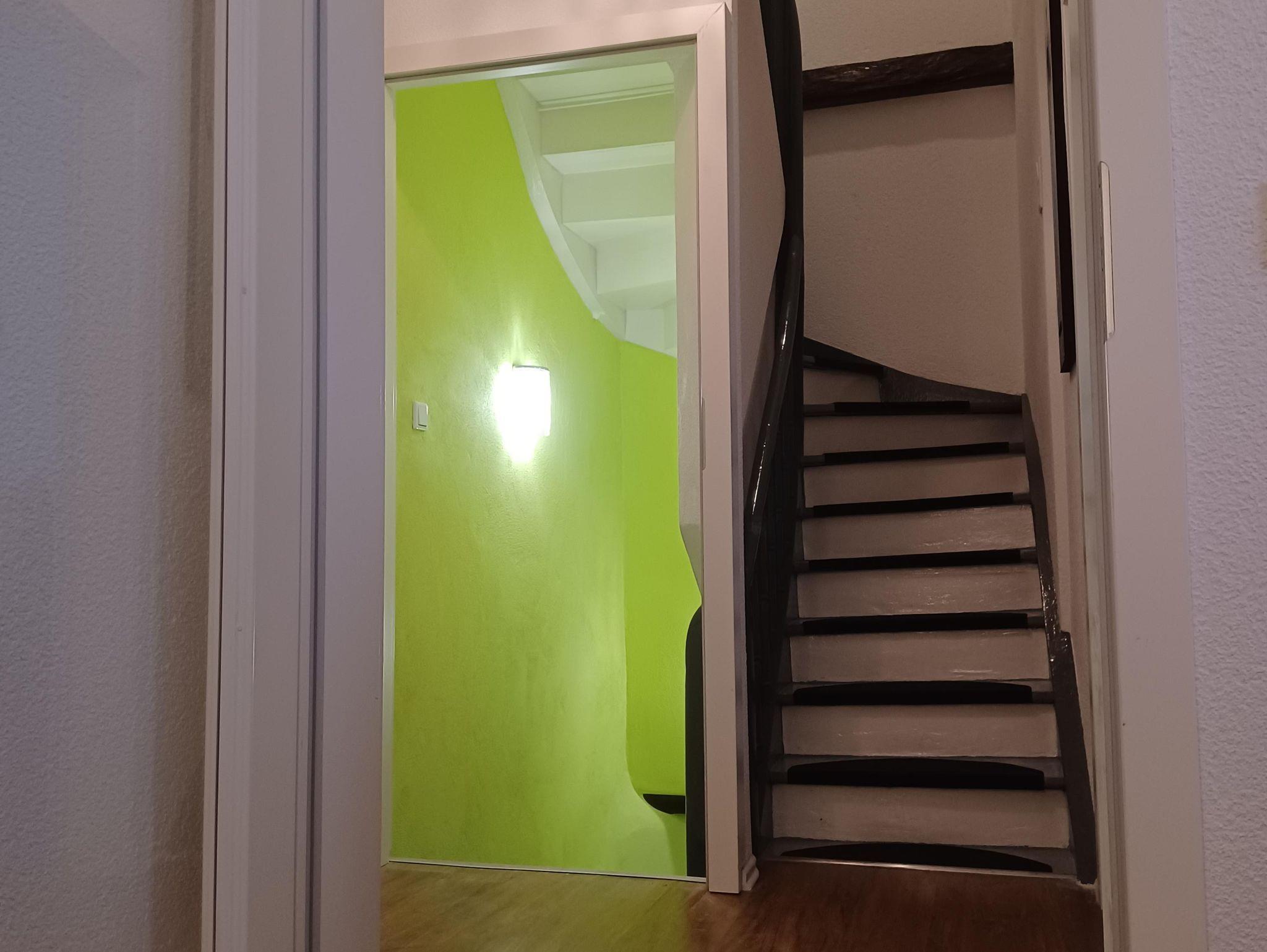 Es gibt drei Schlafzimmer - zwei auf der ersten Etage und auf der zweiten Etage eins, dort befindet sich auch das Wohnzimmer mit Schlafcouch, sowie die überdachte Terrasse. Auf jeder Etage befindet sich auch ein Badezimmer mit einer Dusche. Das Ferienhaus bietet auch eine komplett ausgestattete Küche, sowie eine großen Essbereich. Ein Fahrradkeller steht auch zur Verfügung.