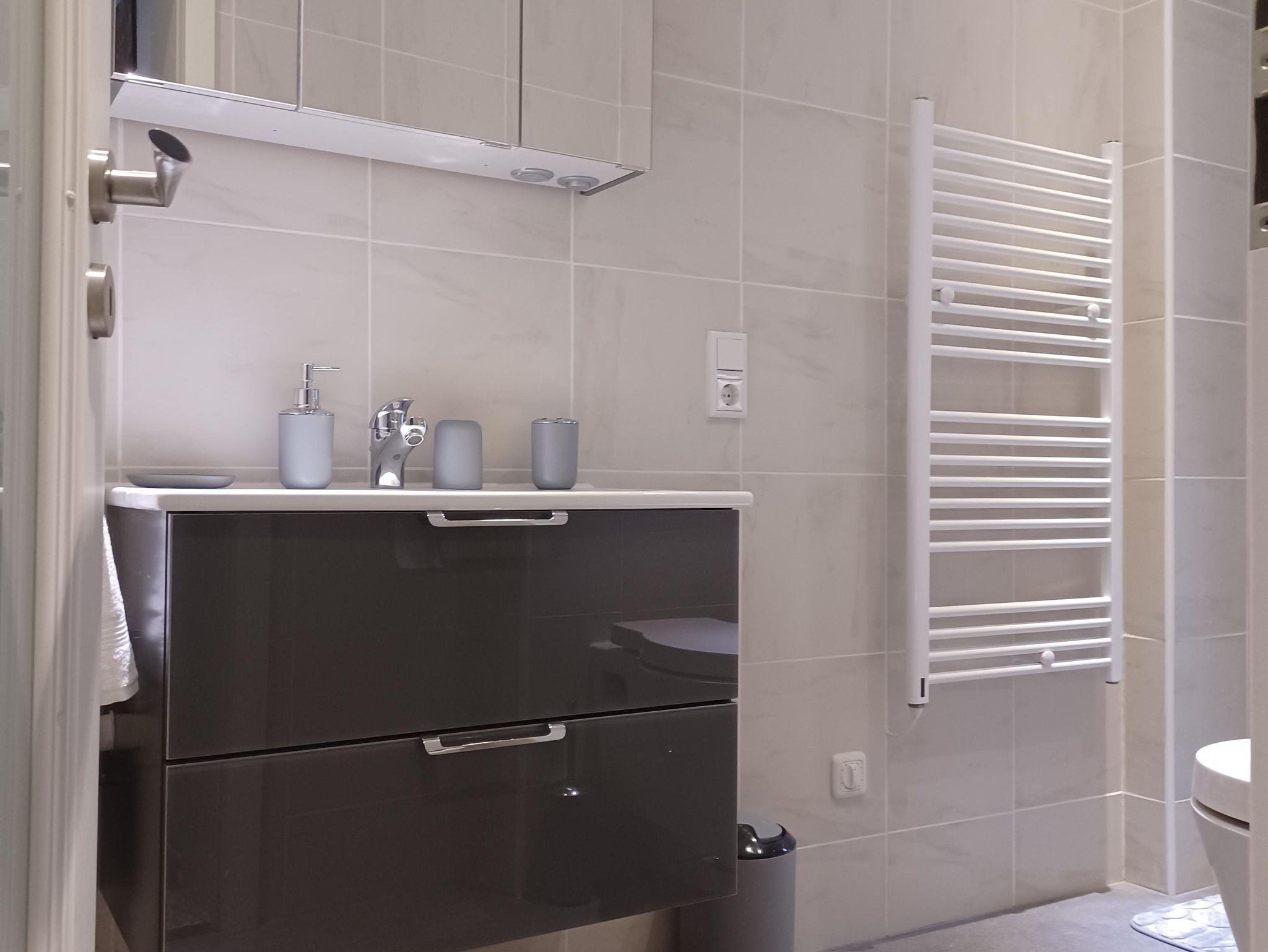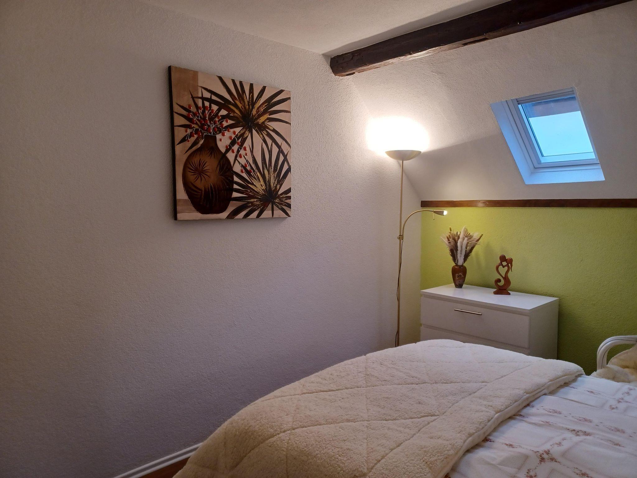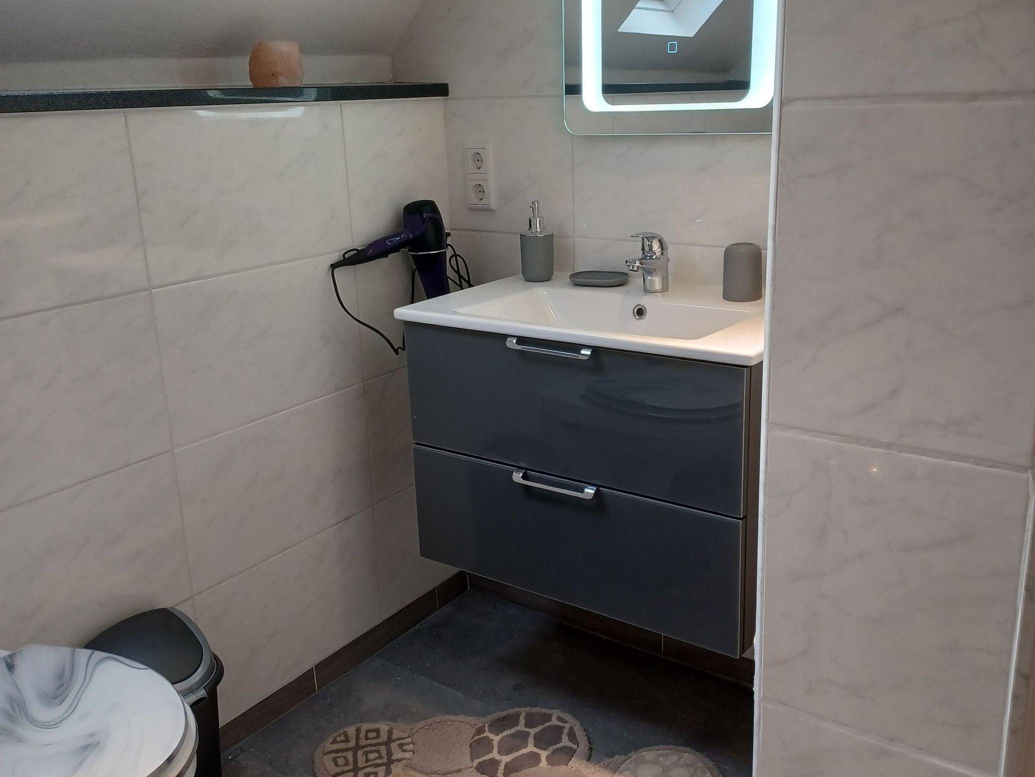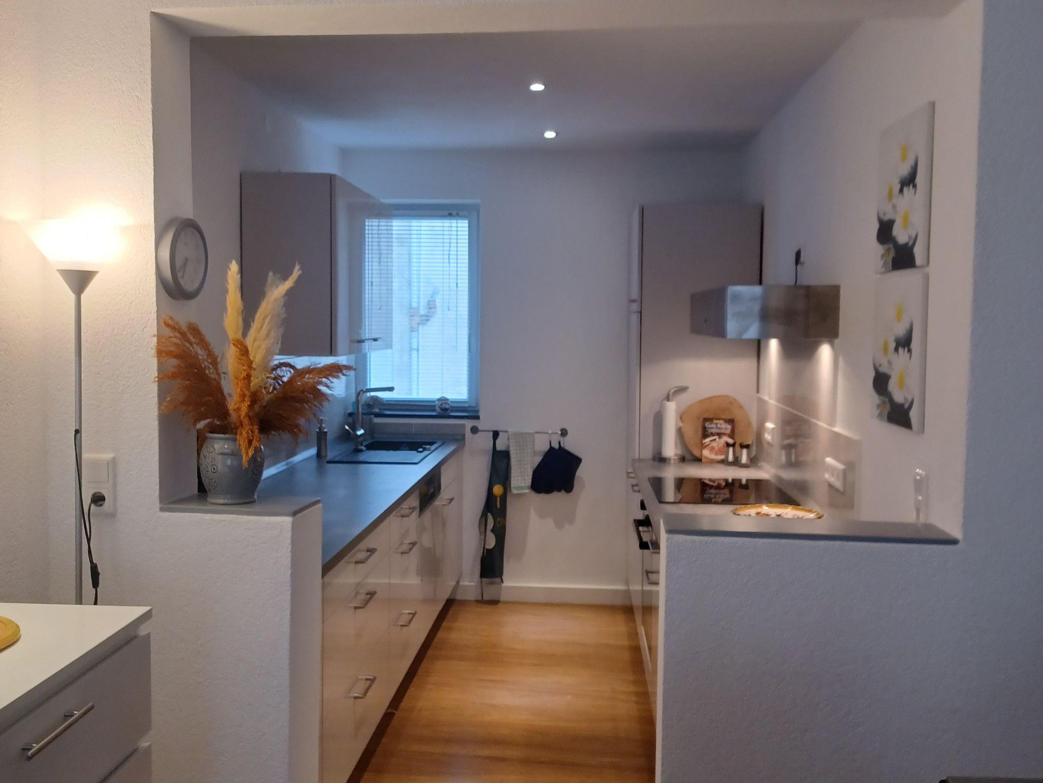 Es gibt drei Schlafzimmer - zwei auf der ersten Etage und auf der zweiten Etage eins, dort befindet sich auch das Wohnzimmer mit Schlafcouch, sowie die überdachte Terrasse. Auf jeder Etage befindet sich auch ein Badezimmer mit einer Dusche. Das Ferienhaus bietet auch eine komplett ausgestattete Küche, sowie eine großen Essbereich. Ein Fahrradkeller steht auch zur Verfügung.