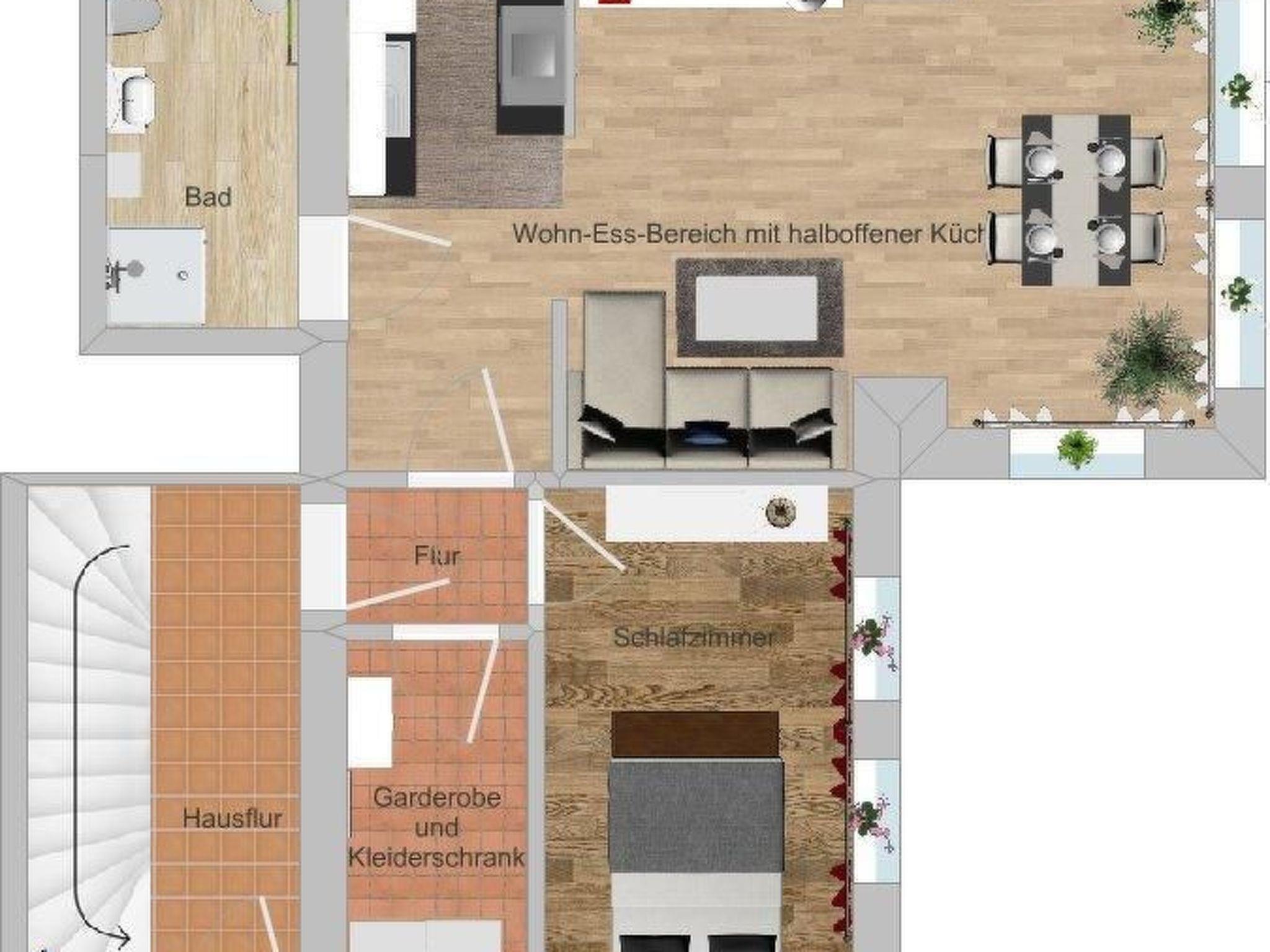 The outdoor area invites you to linger and relax. Enjoy idyllic hours on your own terrace in the quiet inner courtyard, equipped with garden furniture, parasol and a barbecue for free use. This private outdoor area promises relaxing hours surrounded by nature.