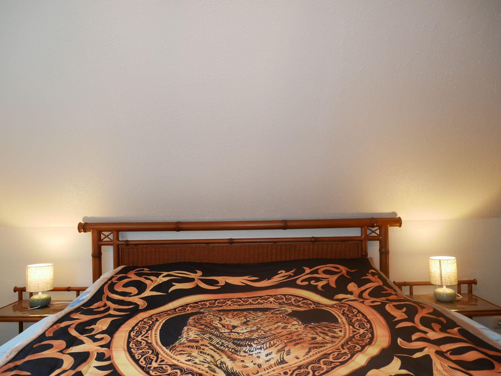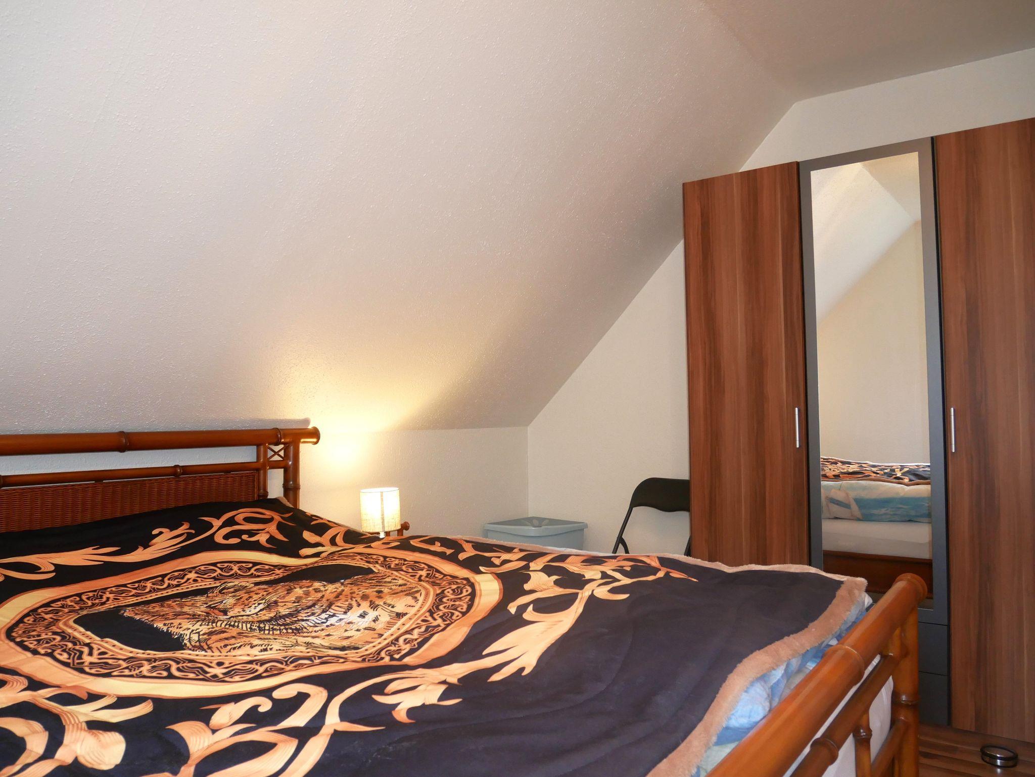 Das Wohnzimmer lädt mit einer bequemen Couch, einem Sessel sowie einem modernen Smart-TV und Radio zum Entspannen ein. Dank kostenfreiem WLAN bleiben Sie auch im Urlaub bestens vernetzt. Im separaten Schlafzimmer sorgt ein komfortables Doppelbett für erholsamen Schlaf, während ein geräumiger Kleiderschrank ausreichend Platz für Ihre Garderobe bietet.