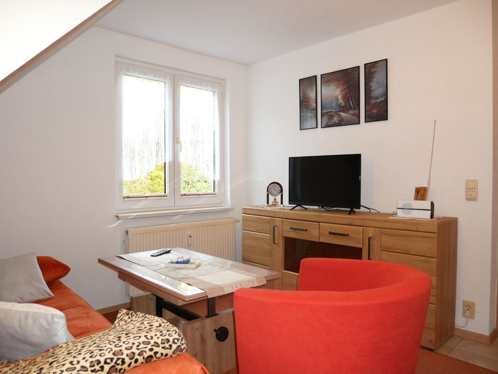 Diese liebevoll eingerichtete Ferienwohnung bietet auf ca. 35 qm alles, was Sie für einen erholsamen Aufenthalt benötigen. Über eine Treppe im Haus gelangen Sie bequem in das 1. Obergeschoss, wo Sie ein helles und freundliches Zuhause auf Zeit erwartet.