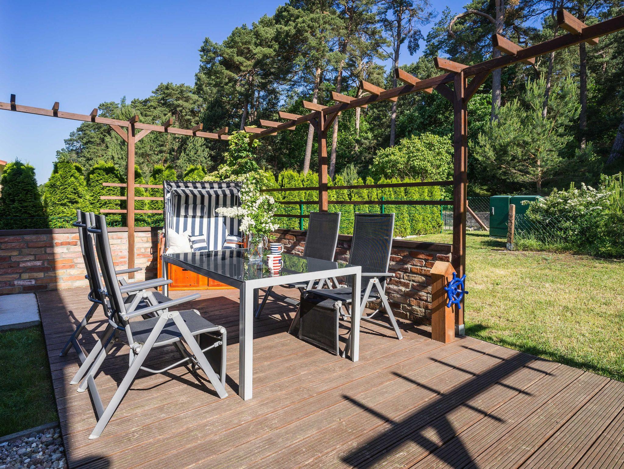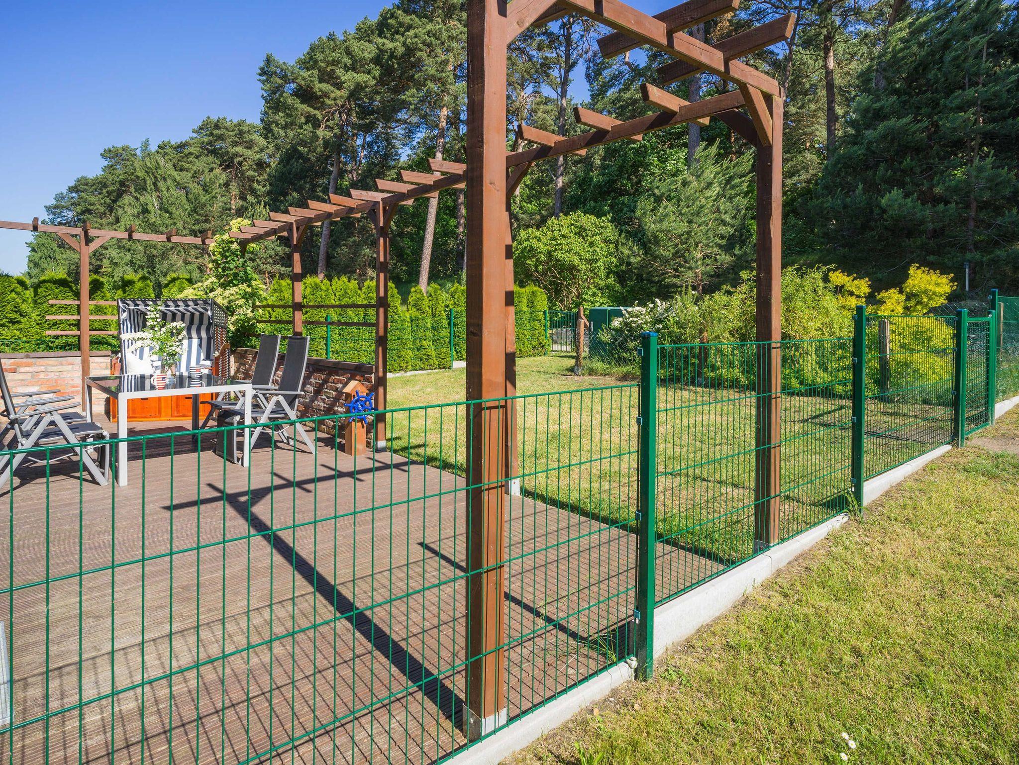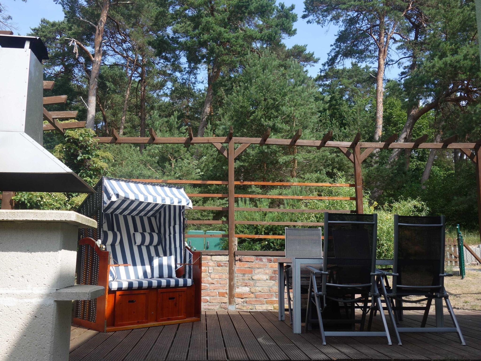24 qm Holzterrasse mit Grillkamin und Blick auf den Küstenwald in eigenem umzäunten Gartenbereich von ca.100 qm direkt am Wohnzimmer; eigener abschließbarer Fahrradschuppen (2,5m x 2m), Leihbettwäsche und Leihhandtücher incl.; kostenlose Kinderausstattung (Reisebett mit Matratze, Hochstuhl, WC-Sitz und Schemel, Wickelauflage, Kindergeschirr) auf Anfrage;