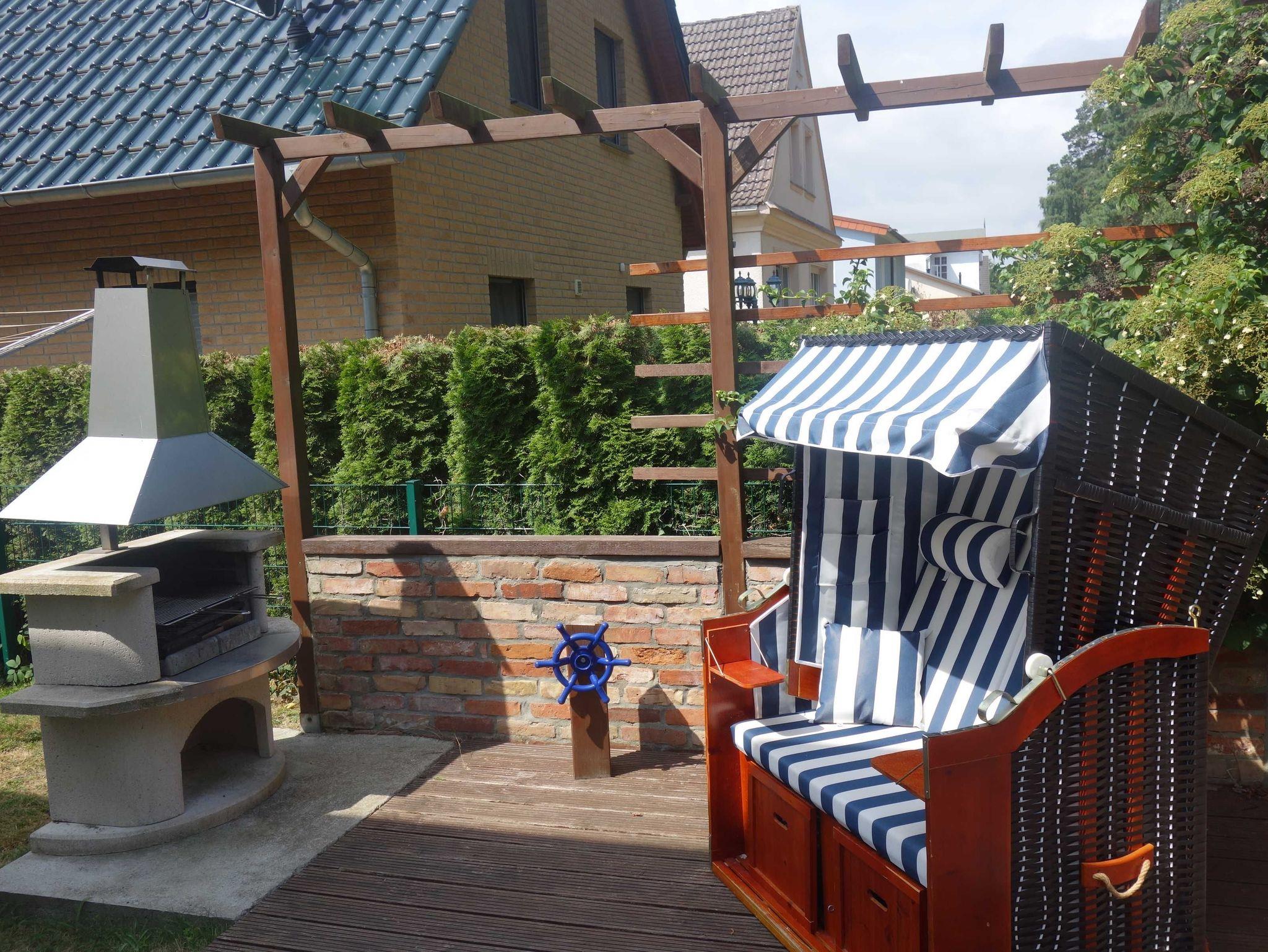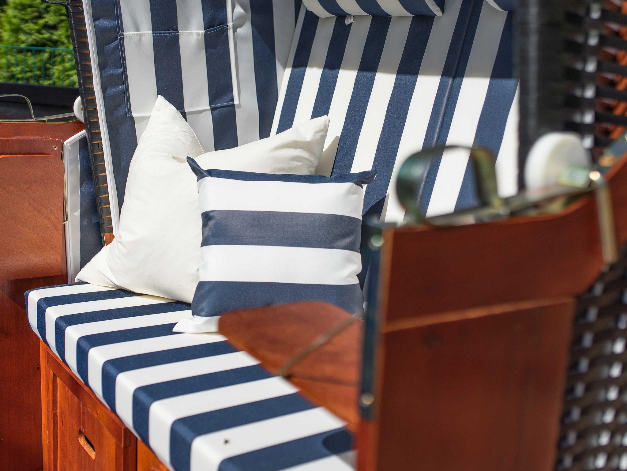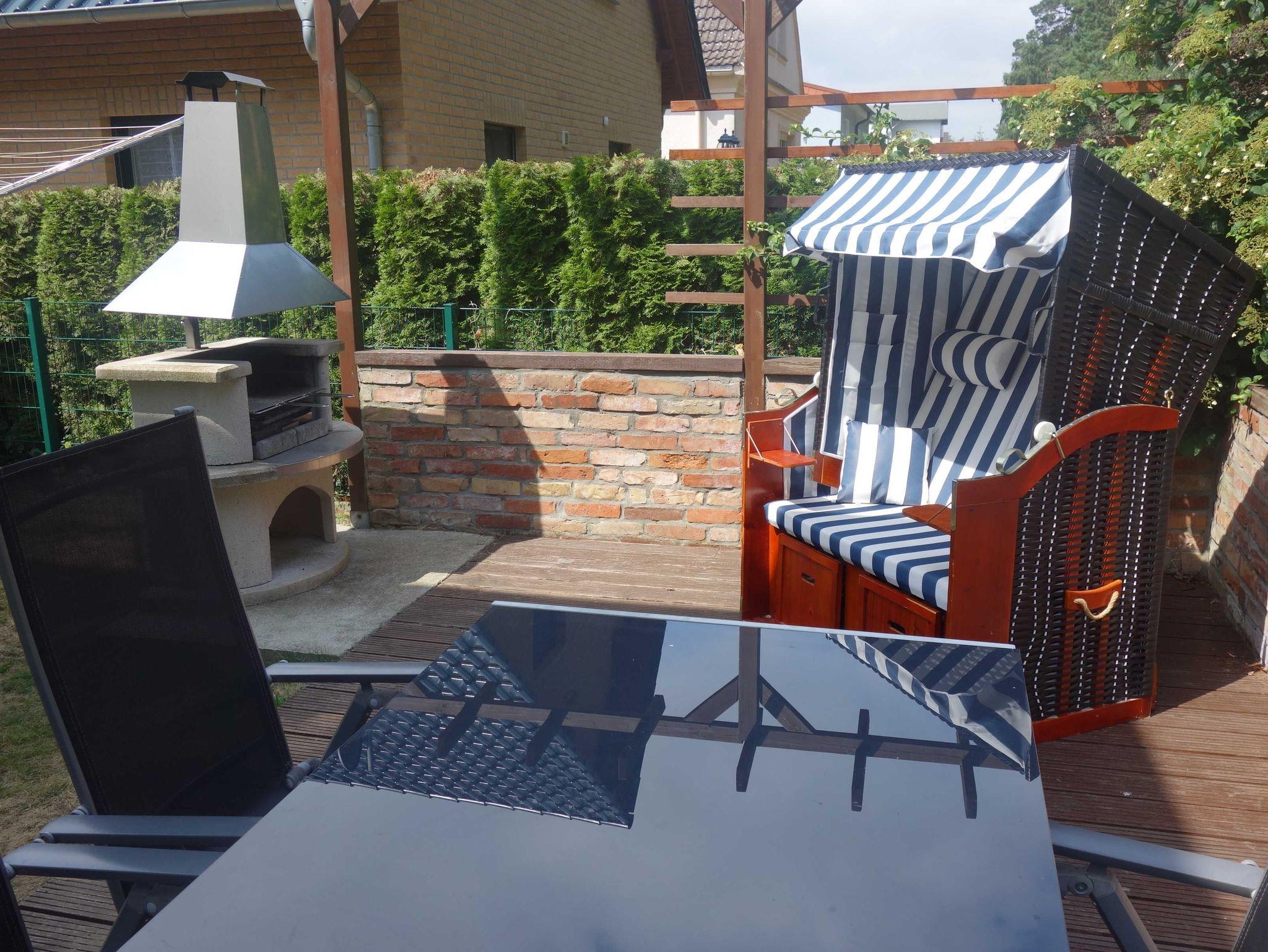 24 qm Holzterrasse mit Grillkamin und Blick auf den Küstenwald in eigenem umzäunten Gartenbereich von ca.100 qm direkt am Wohnzimmer; eigener abschließbarer Fahrradschuppen (2,5m x 2m), Leihbettwäsche und Leihhandtücher incl.; kostenlose Kinderausstattung (Reisebett mit Matratze, Hochstuhl, WC-Sitz und Schemel, Wickelauflage, Kindergeschirr) auf Anfrage;