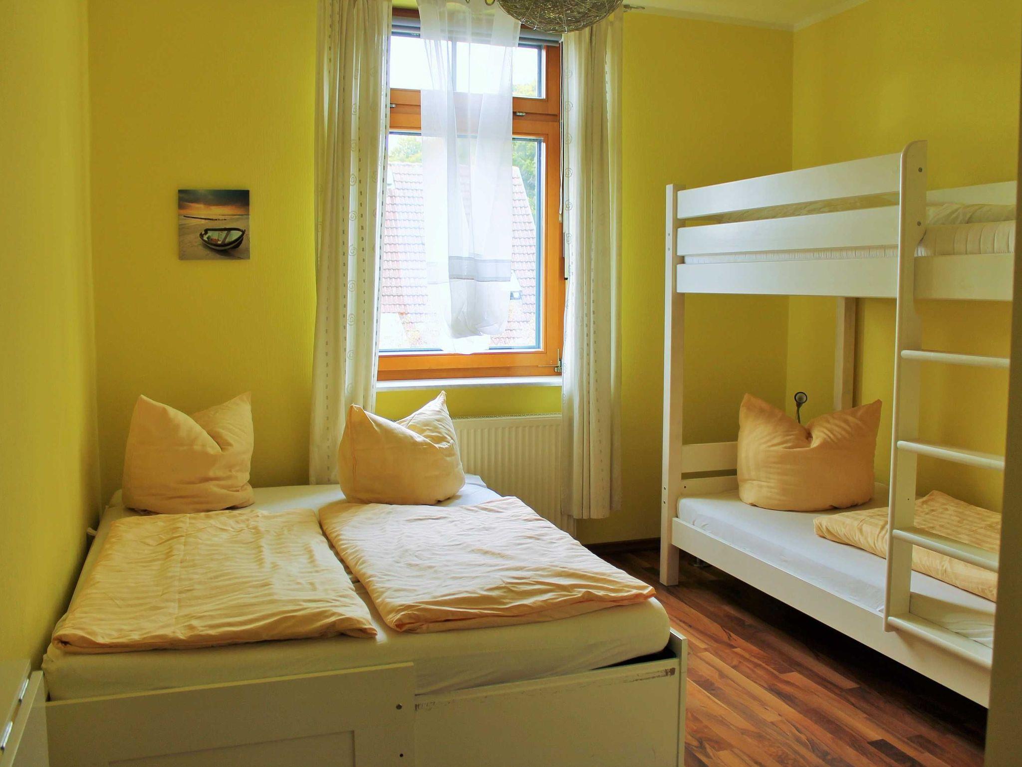 In einem Schlafzimmer steht Ihnen ein Doppelbett (180 x 200 cm) sowie ein Wandklappbett (90 x 200 cm) zur Verfügung. In einem weiteren Schlafzimmer bieten wir Ihnen ein Doppelbett (160 x 200 cm) und ein Doppelstockbett (2 x 90 x 200 cm) an.