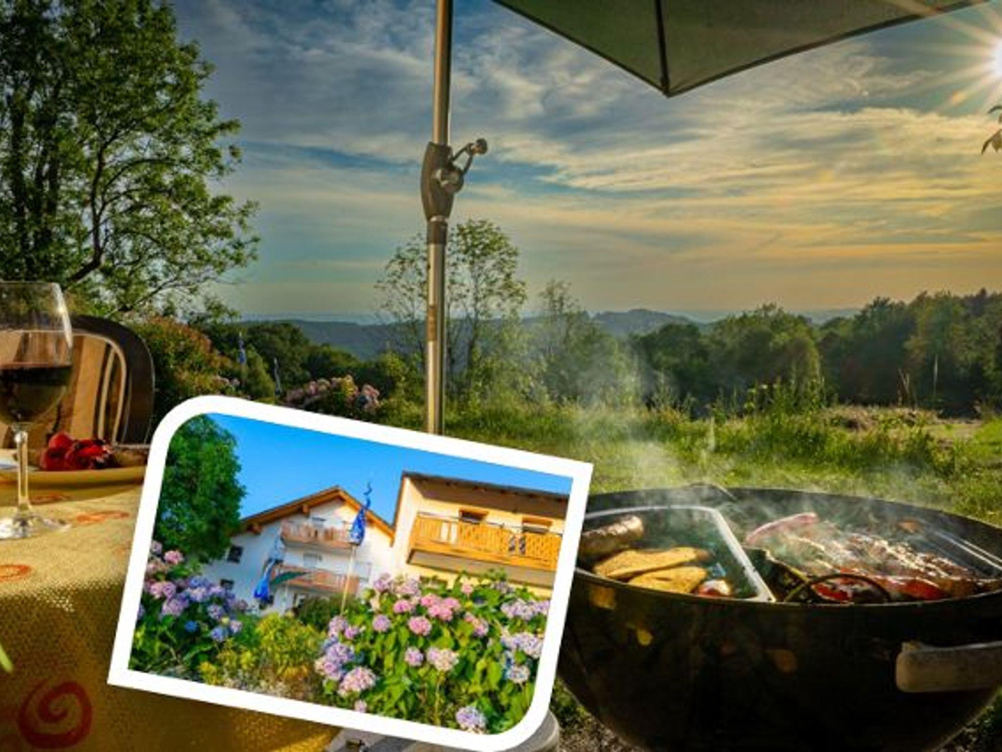 Unser beschauliches Dorf liegt auf einer sanften Anhöhe, rund 550 Meter über dem Meeresspiegel. Von hier aus genießen Sie einen unvergleichlichen Panoramablick, der an klaren Tagen über 100 Kilometer weit reicht.