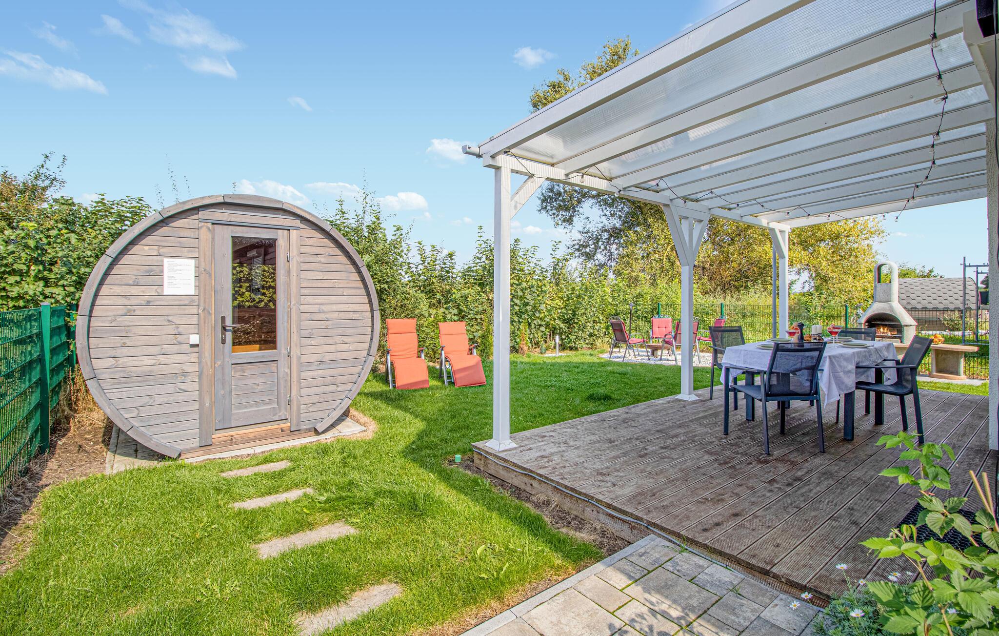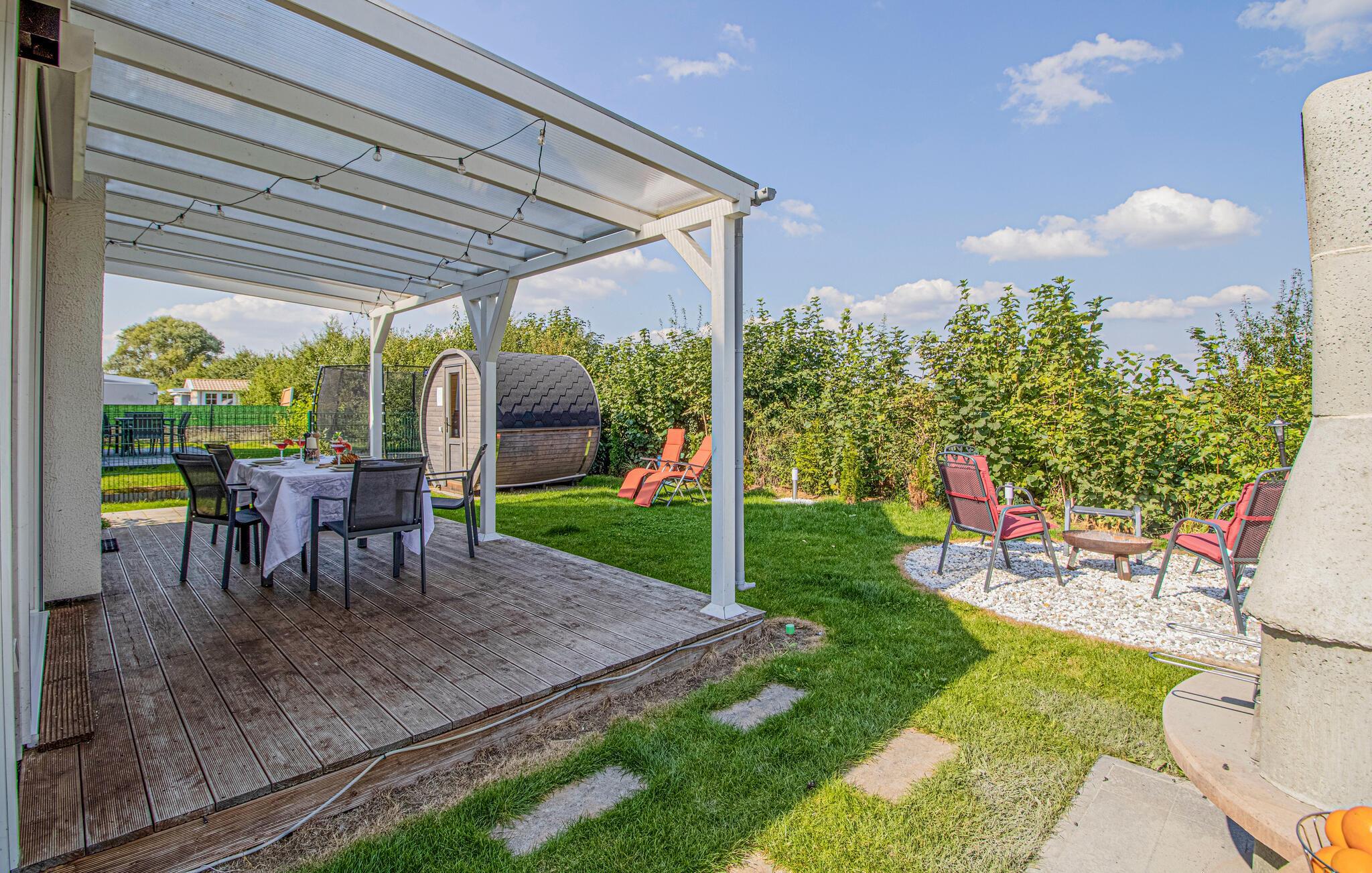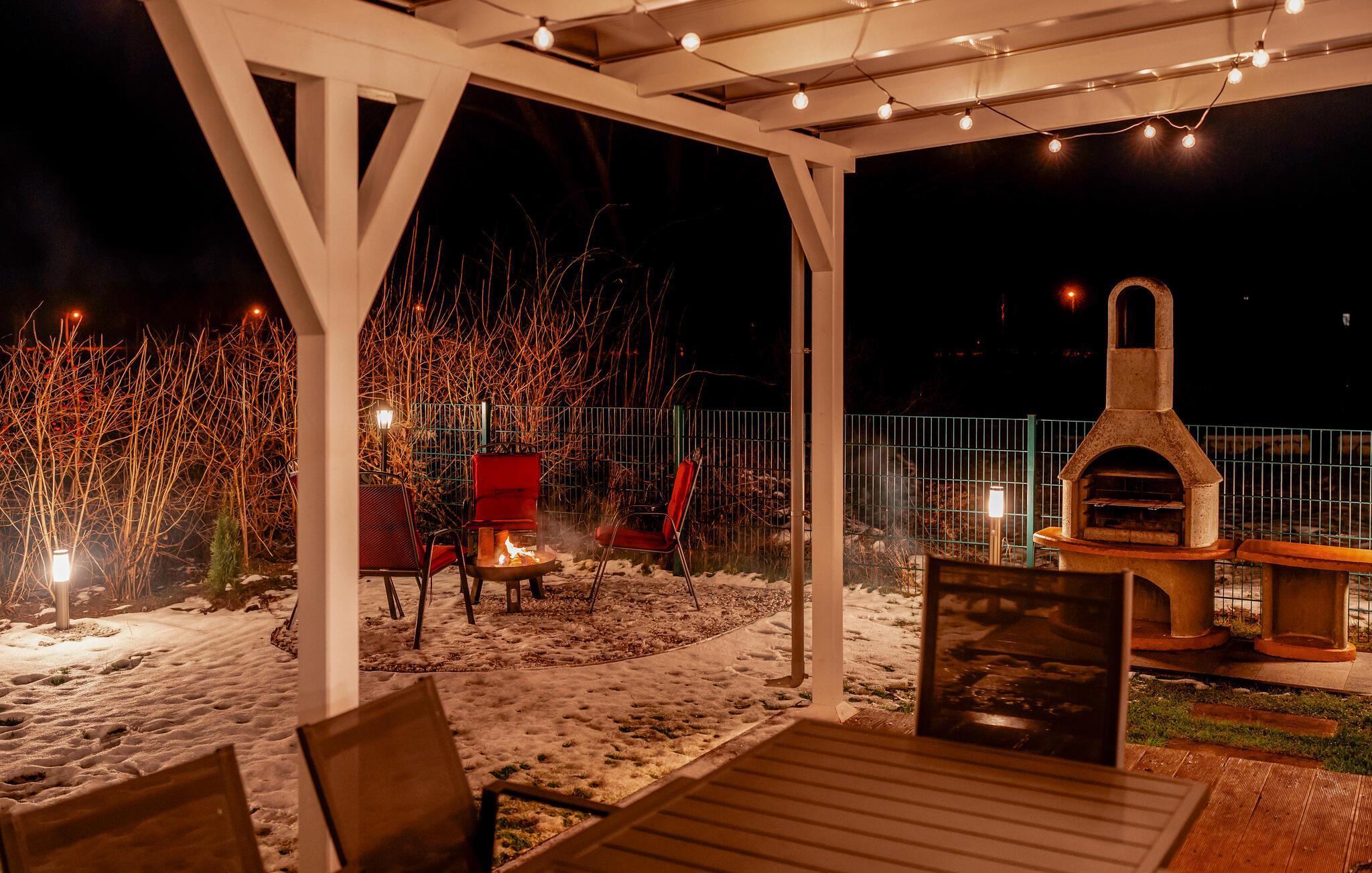 Du kan nyte solen og den friske luften i din egen hage eller på terrassen, som er dekket av en pergola i tre. Tilbring hyggelige kvelder på terrassen, slå deg ned under pergolaen eller grill og legg planer for ferieutfluktene dine.