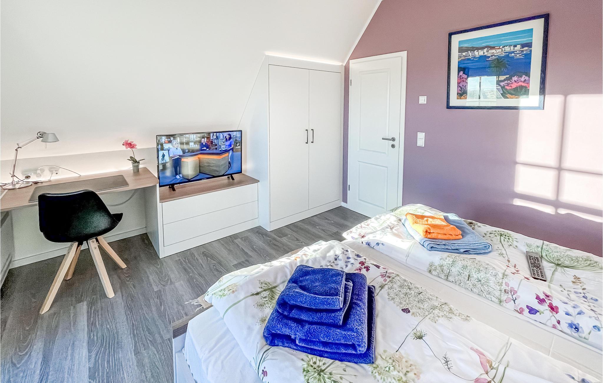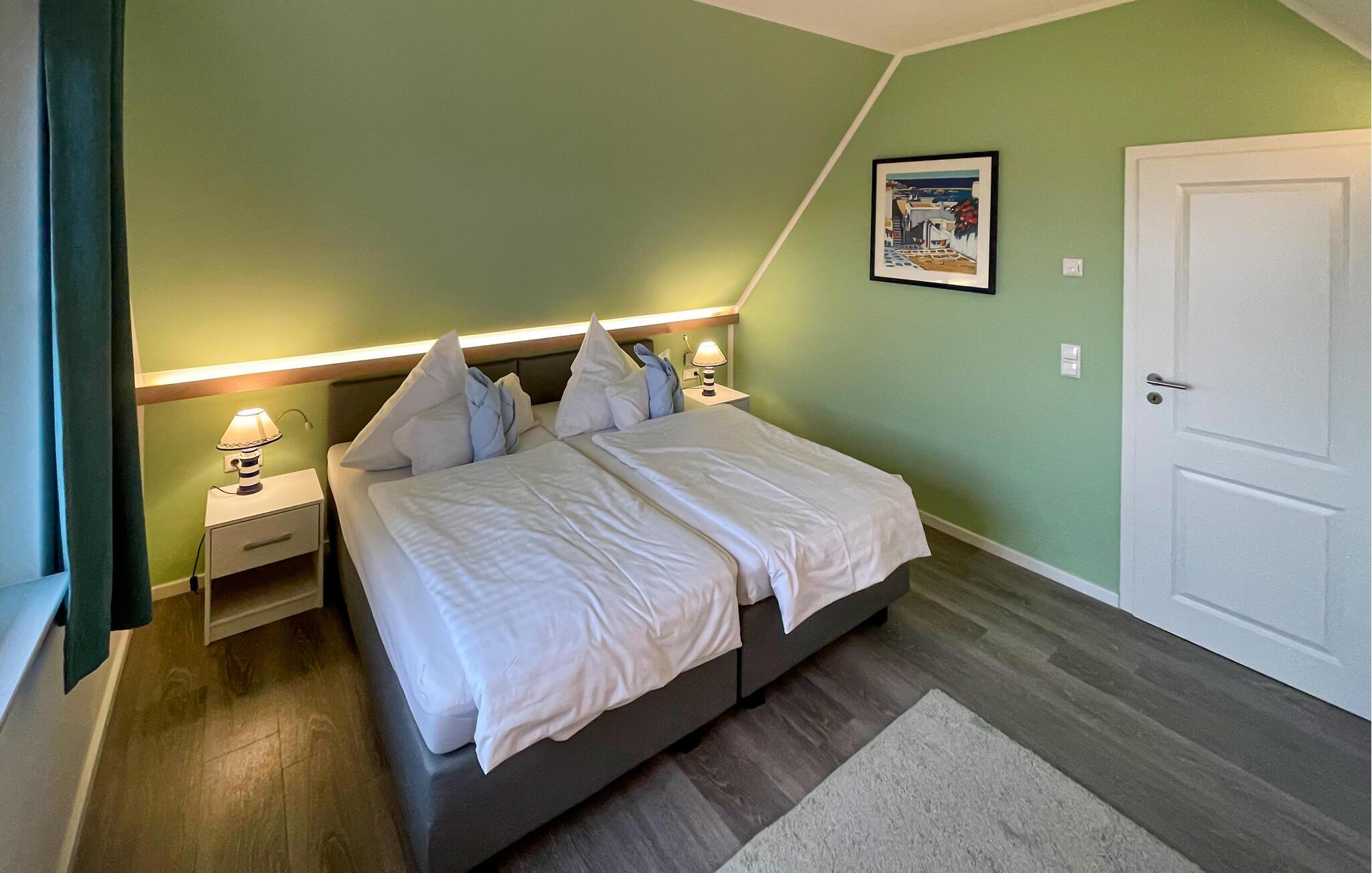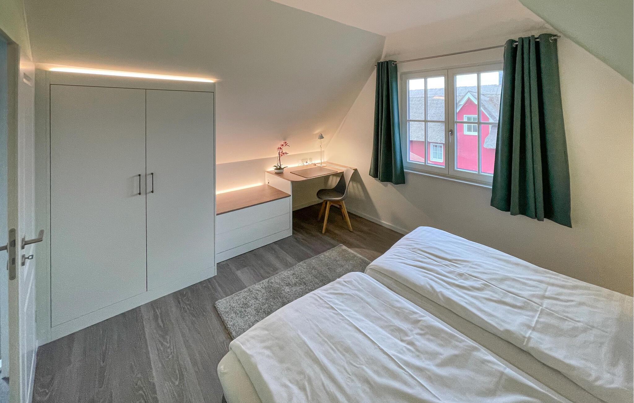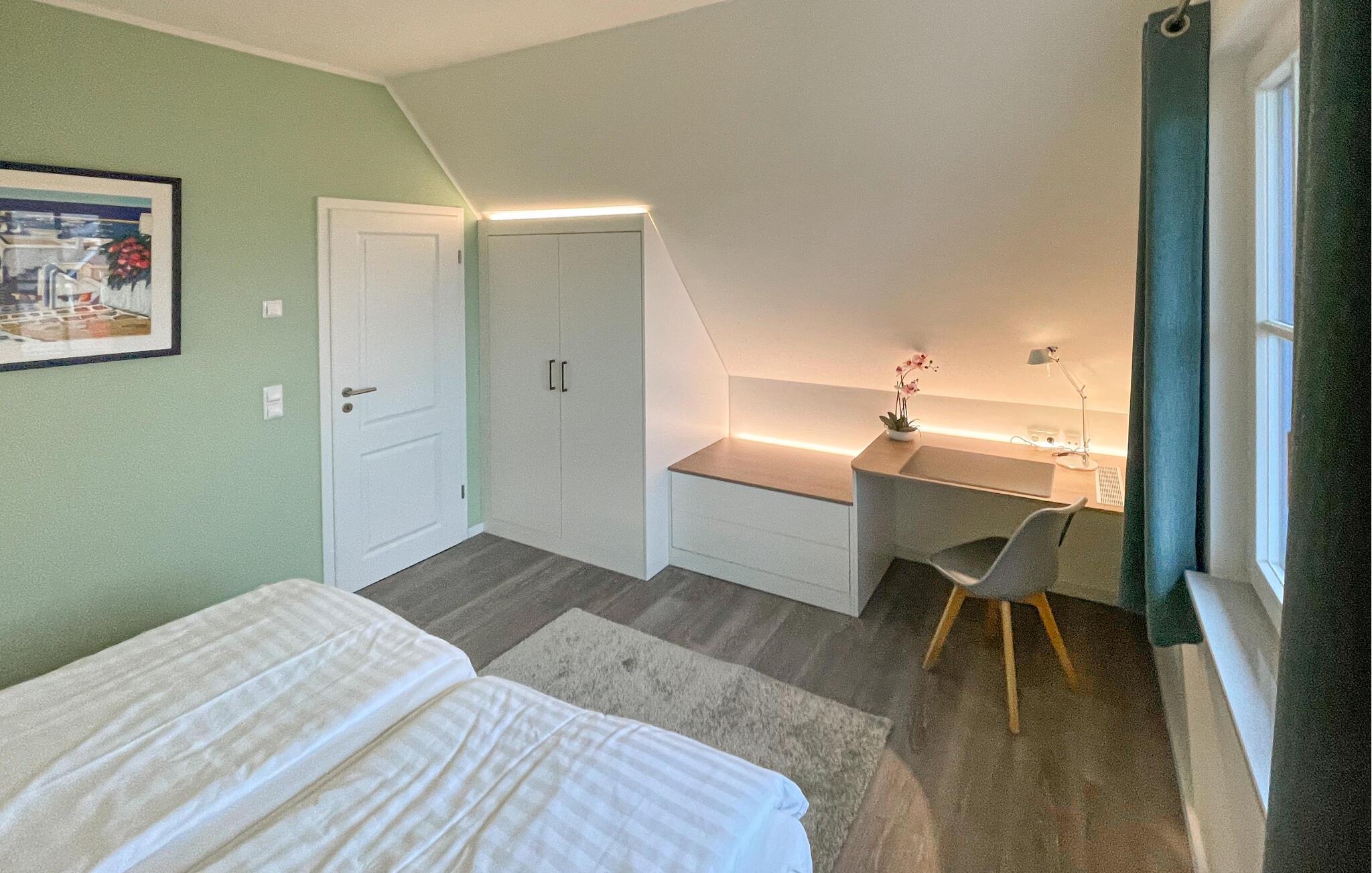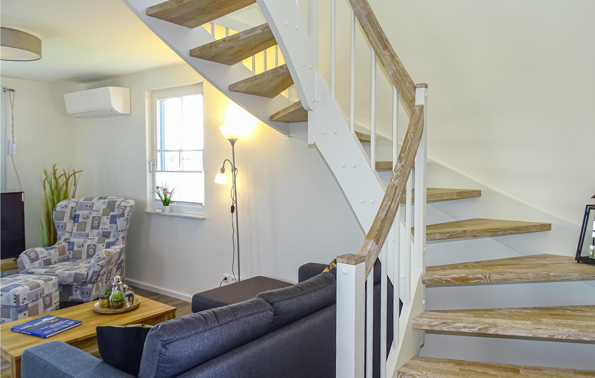 Etter at du har parkert bilen på eiendommen, går du inn i eneboligen "Huus Gisela" gjennom gangen og befinner deg umiddelbart i sentrum. Herfra har du tilgang til gjestetoalettet, vaskerommet med vaskemaskin og tørketrommel, badstuen av høy kvalitet med tilstøtende dusj og den høykvalitets møblerte stuen med vedovn og åpen kjøkkenløsning, som ikke lar noe tilbake å ønske. Herfra fører også trappen opp til øverste etasje med de to soverommene og det romslige badet med dusj og badekar. De fleste vinduene er utstyrt med insektsnett. Fra stuen har du tilgang til den romslige terrassen med gassgrill. Vi har bygget et skur for syklene dine, som også har en håndkjerre. Det er klimaanlegg i første etasje og i andre etasje.