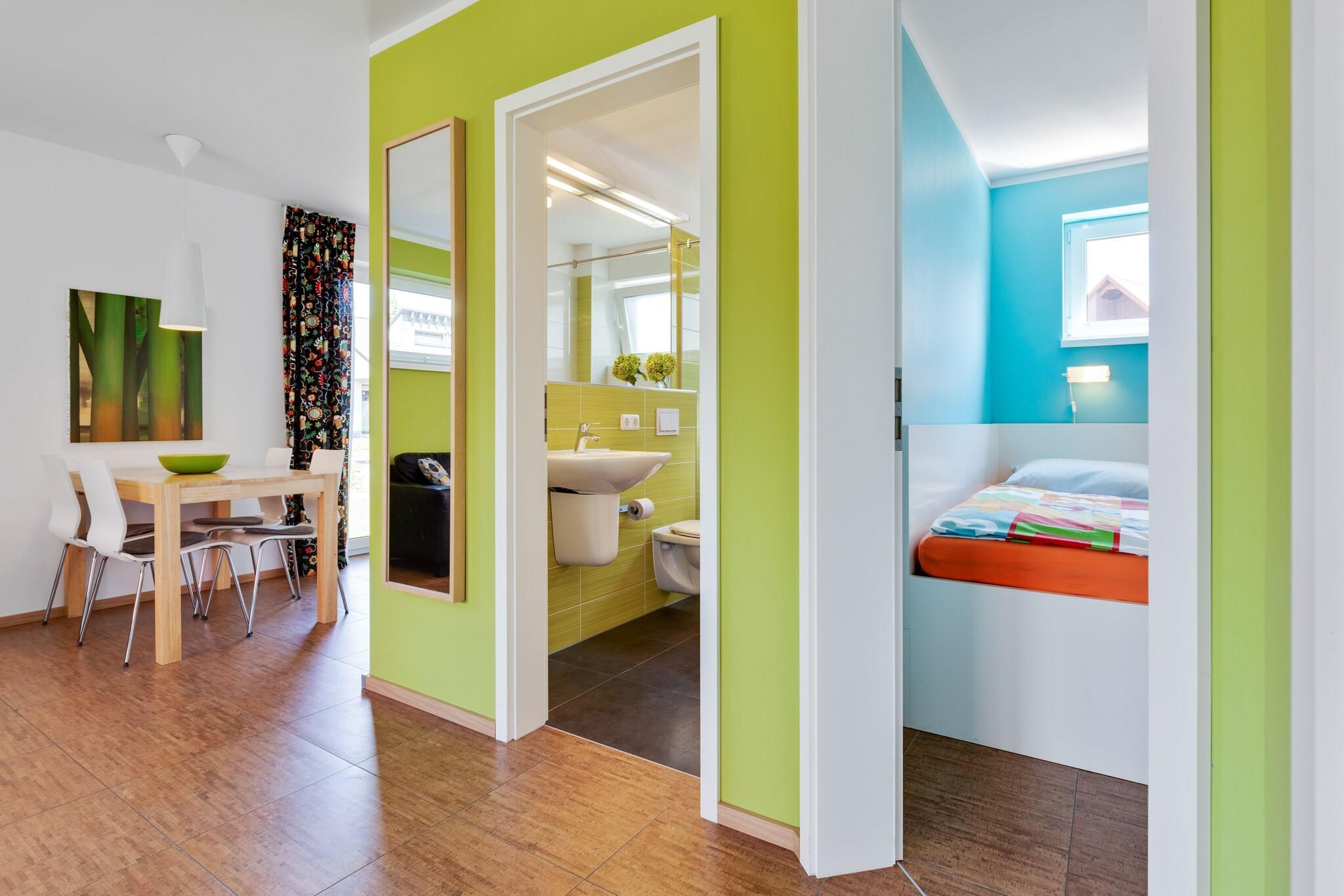 Stranden ligger 600 meter unna, de velutviklede sykkel- og turstiene, samt ridemuligheter byr på mye avslapning. Zierow har en praktisk beliggenhet for turer til Rostock, Schwerin, Wismar, Poel Island, Lübeck og Hamburg. Butikker finner du på den tilstøtende campingplassen eller i den lille butikken kan du få ferskt brød, ca 4 km er det et kjøpesenter i nærheten av Wismar og ca 2 km i nærheten av Gägelow. Det kreves turistskatt fra april til oktober fullt utstyrt hushalvdel bøye 2 er 50 kvm og er ideell for familier med opptil 4 personer og 1 baby. Sentrum av fritidsboligen er det åpne kjøkkenet med utsikt over terrassen. Den innebygde stekeovnen, keramisk komfyr, vask, kjøleskap med fryser og oppvaskmaskin gjør selvhushold til en lek. Feriehuset Boje 2 inkluderer møblert terrasse og parkeringsplass Turistskatt: Fra 01.04.-30.09. en turistskatt på EURO 1,00 p. Anskaffet dag fra 16 år. Alvorlig skadet (GdB 50%) EURO 0,50 p. Dag. Du vil motta spa-kortene dine for den bestilte perioden på stedet.