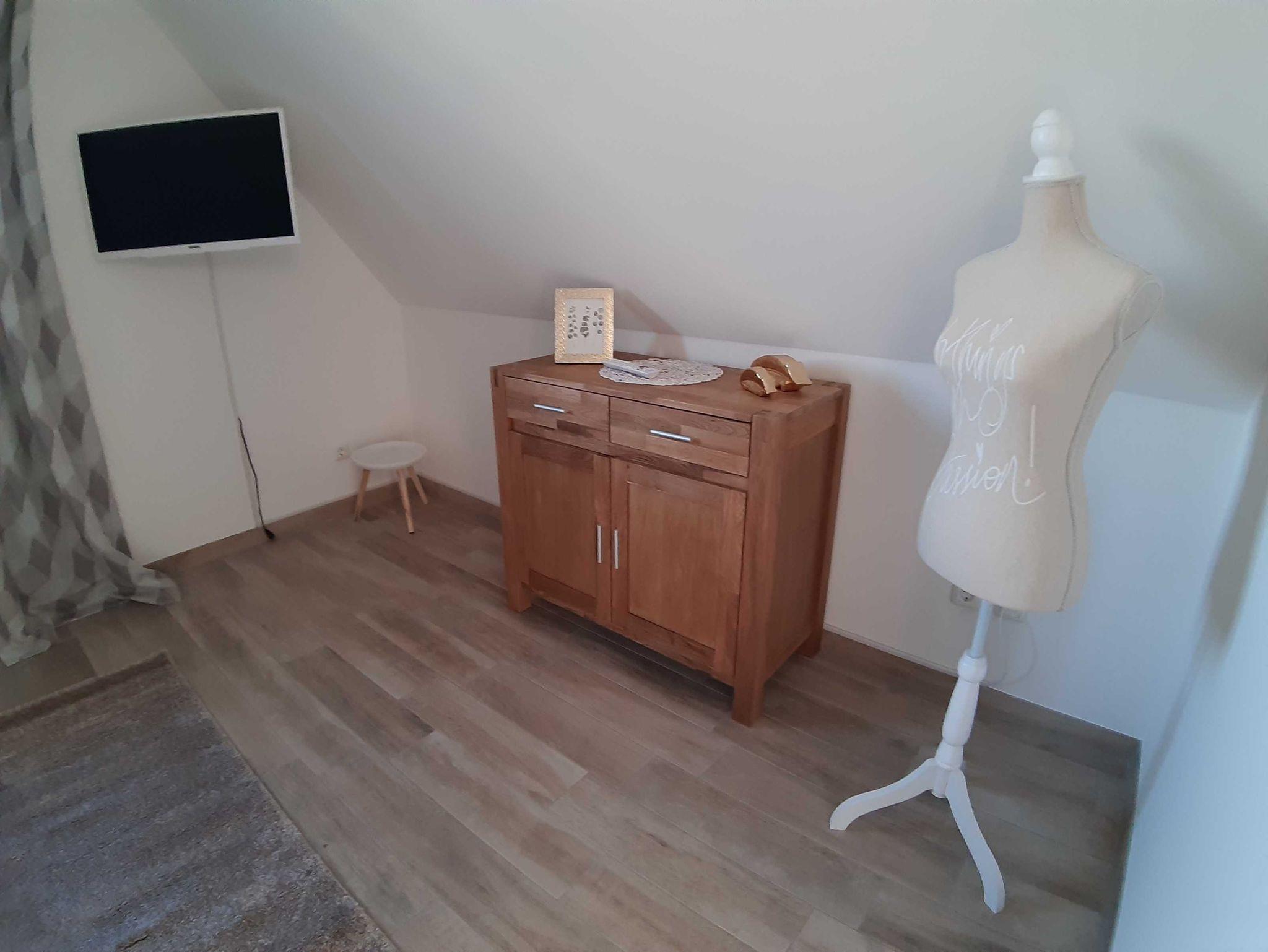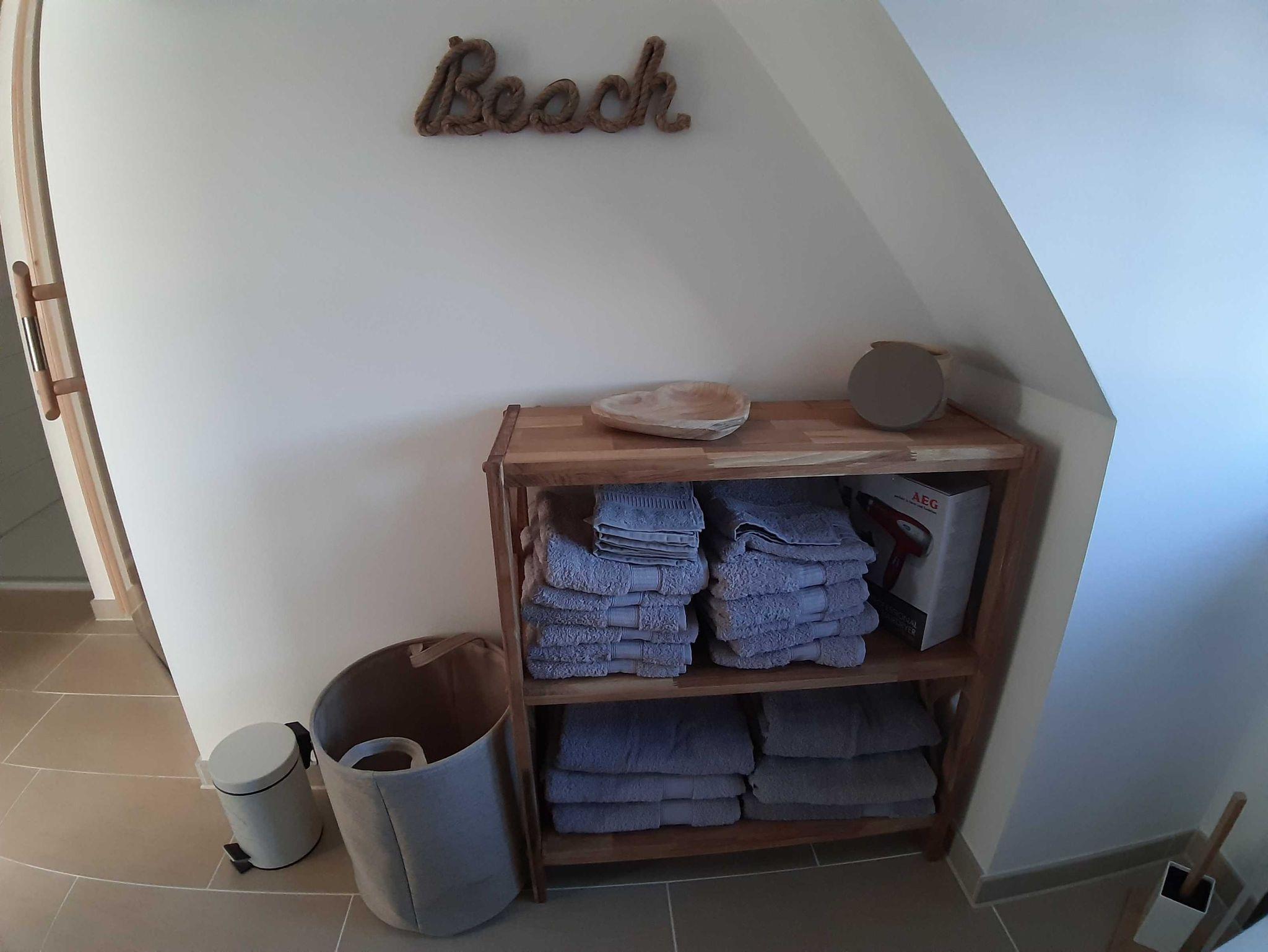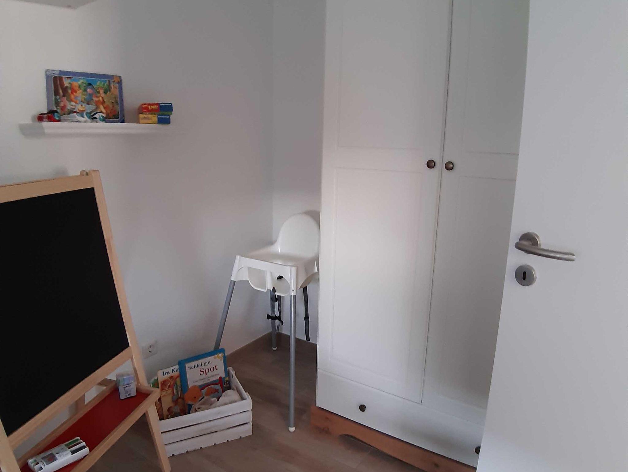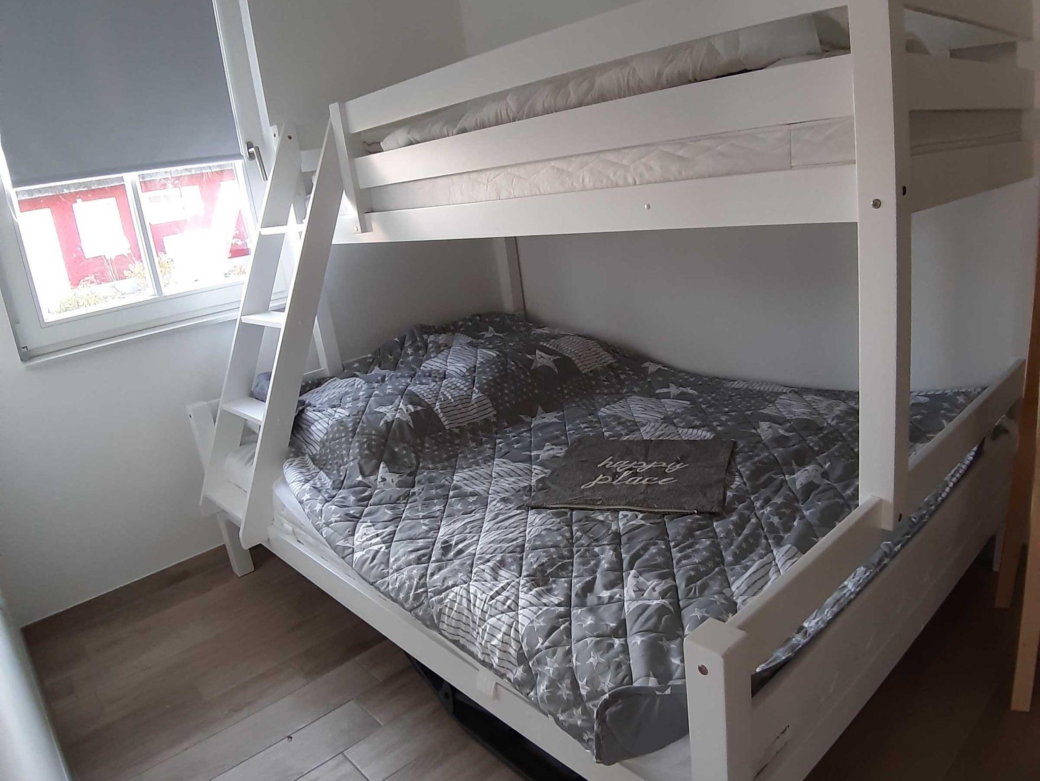Ein Schlafzimmer mit Etagenbett für 3 Personen (untere Liegefläche 140 x 200 cm / obere Liegefläche 90 x 200 cm), ein Hauswirtschaftsraum mit Waschmachine und Waschständer. Das Schlafsofa im Wohnzimmer ist mit wenigen Handgriffen in ein komfortables Bett für 1-2 Personen zu verwandeln.