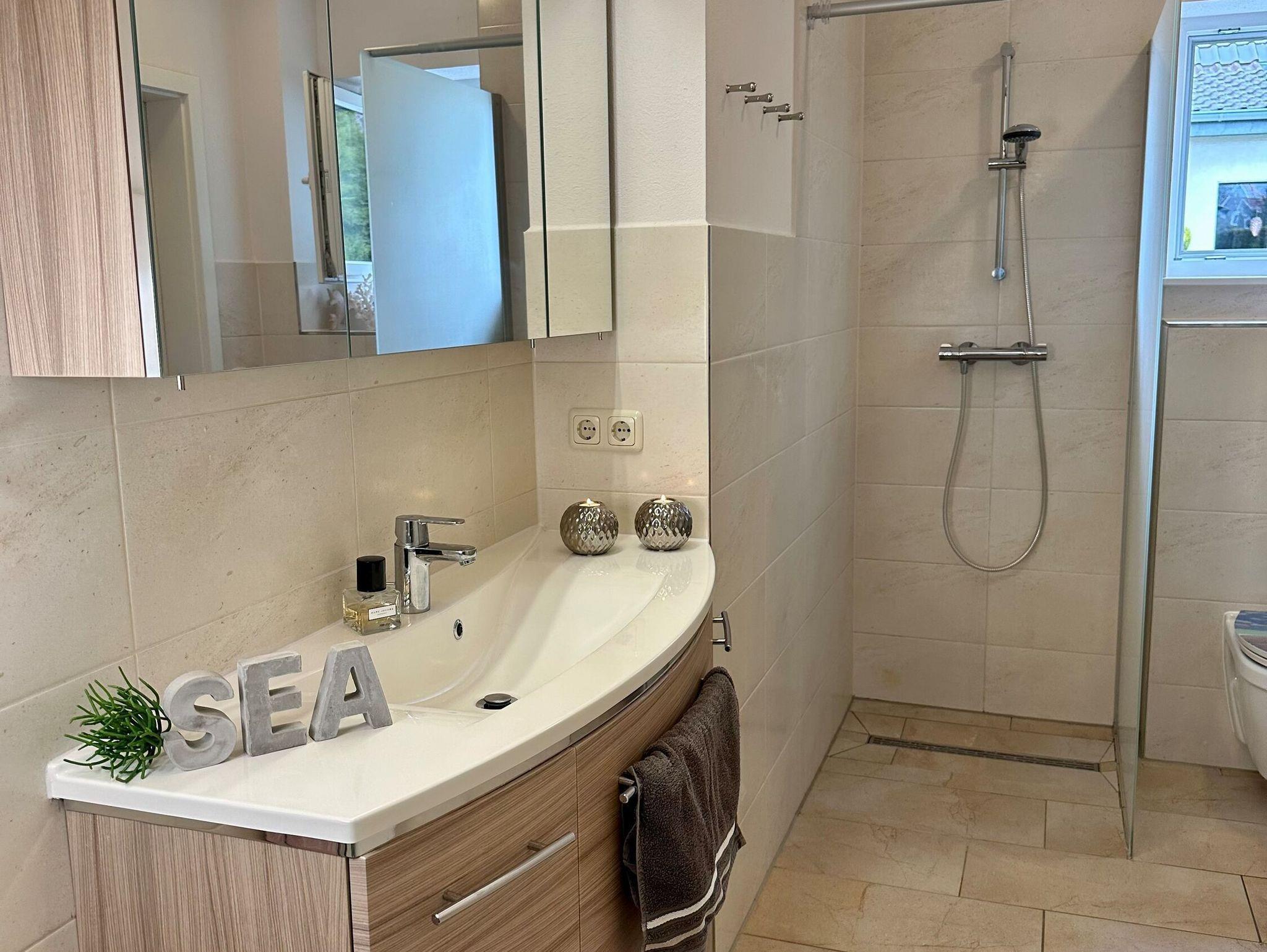- Duschbad mit Dusche, WC, Spiegel, Ablage, Fön