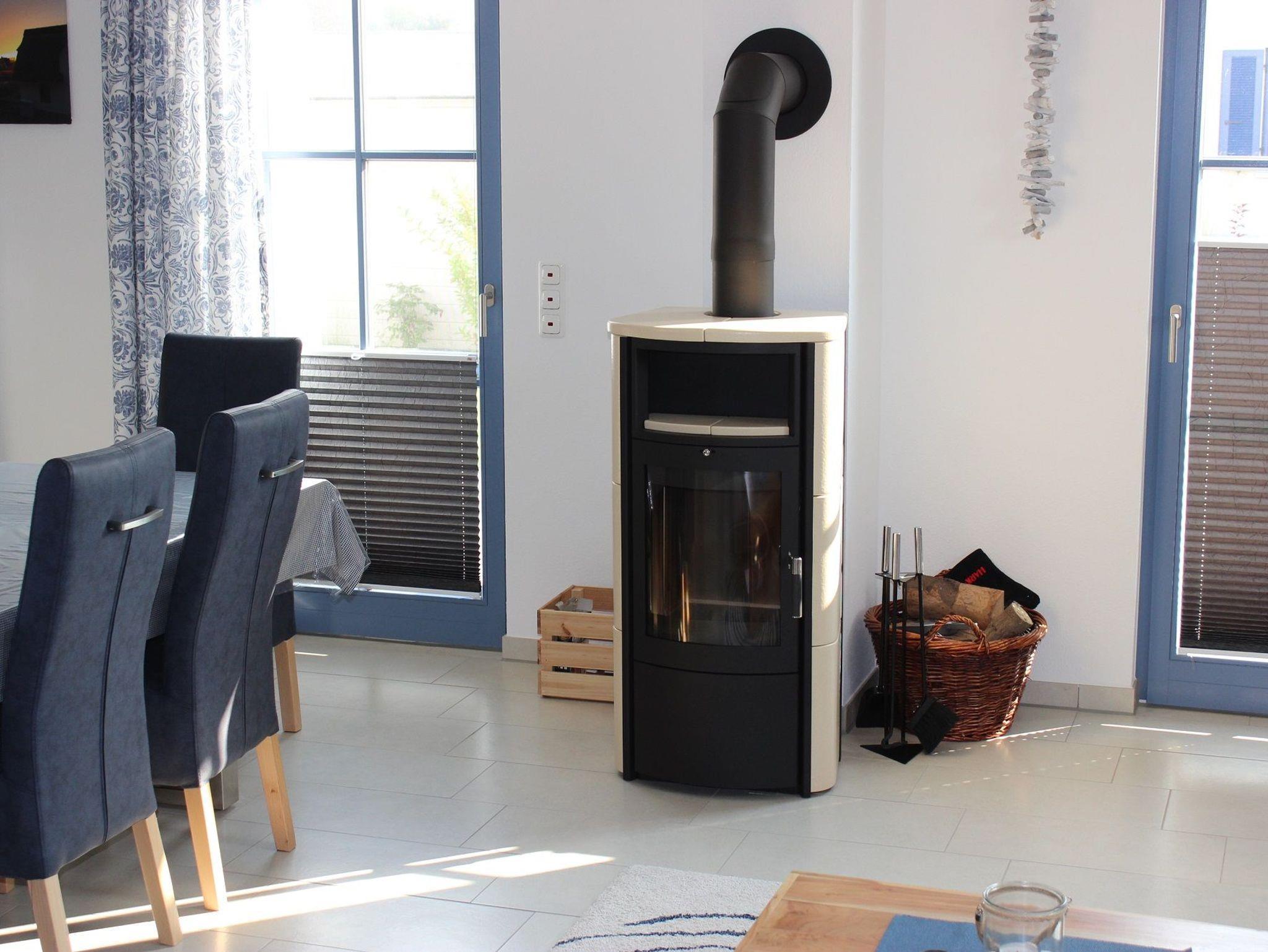 Im gesamten Haus ist durch die Fußbodenheizung, dem Reetdach und dem Kamin immer ein angenehmes Raumklima.