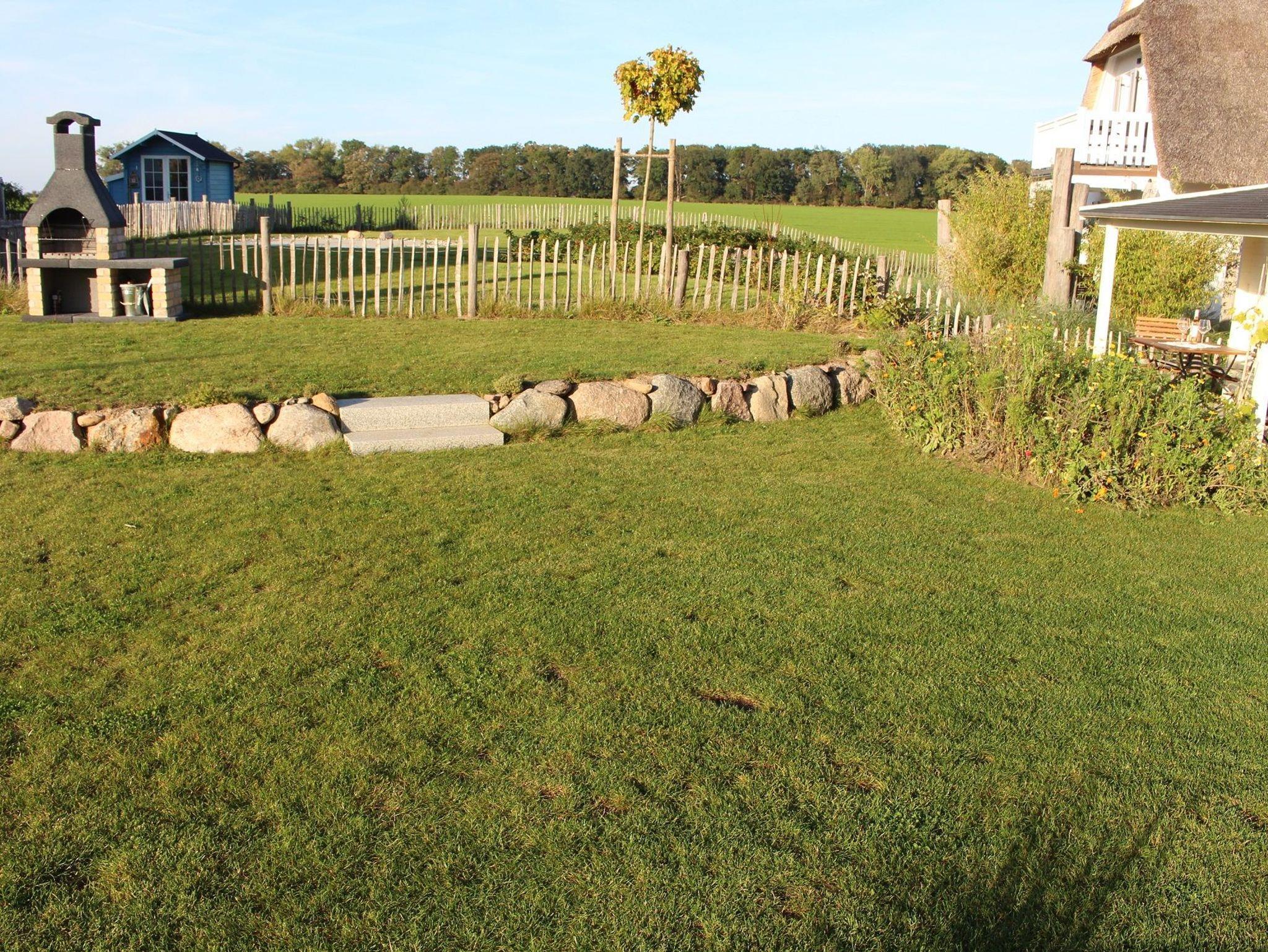 Fühlen Sie sich hier sofort wohl und genießen Sie die Privatheit mit Ihren Liebsten im Haus, bei einer Tasse Kaffee am Morgen oder einem Glas Wein am Abend auf der Terrasse oder am Gartenhaus unter weinberankter Überdachung. Bei Wellengang werden Sie die Ostsee riechen und die Brandung hören.