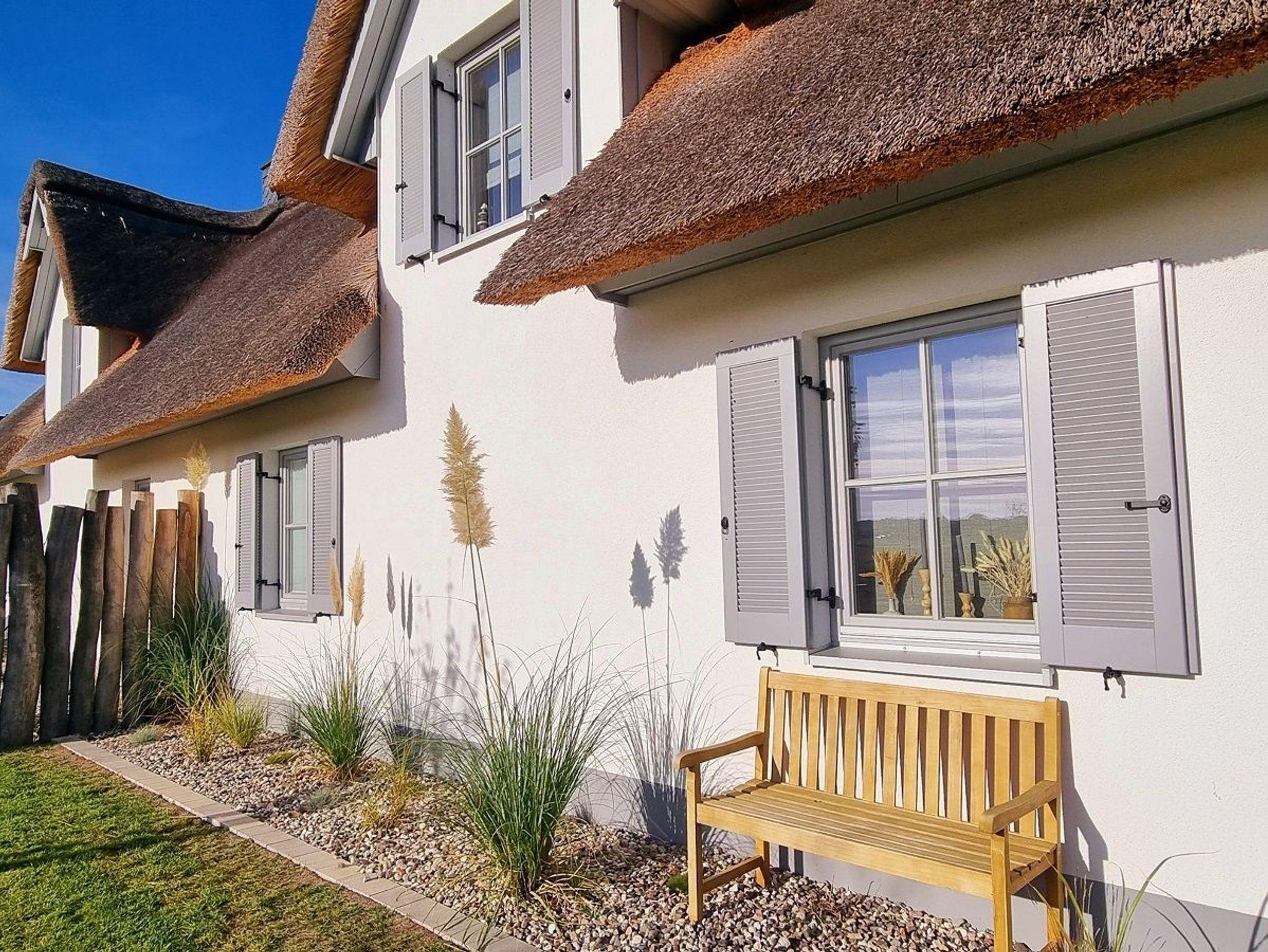 Zum Nachbarhaus wurde ein Sichtschutz durch Rundhölzer hergestellt, denn Intimsphäre ist auch im Urlaub wichtig. Sollten befreundete Familien das Nachbarhaus „Majupani“ nutzen, kann das Gartentor für mehr Miteinander geöffnet werden. Das Reethaus „Strandmuschel“ liegt ruhig am Rande des Feriengebiets „De Poeler Drift“ in Zierow. Kein Durchgangsverkehr stört die Ruhe und die Aussicht über die grünen Felder. Kinder können ungestört auf dem Spielplatz der gemeinsamen Grünfläche toben und zum familienfreundlichen, flach abfallenden Sandstrand gelangen Sie abseits vom Autoverkehr über einen Fußweg (ca. 800 Meter). Wer Kultur und Abwechslung sucht, freut sich über die nahegelegenen Städte Wismar (8 km), Schwerin (35 km), Lübeck (70 km) und Rostock (74km).