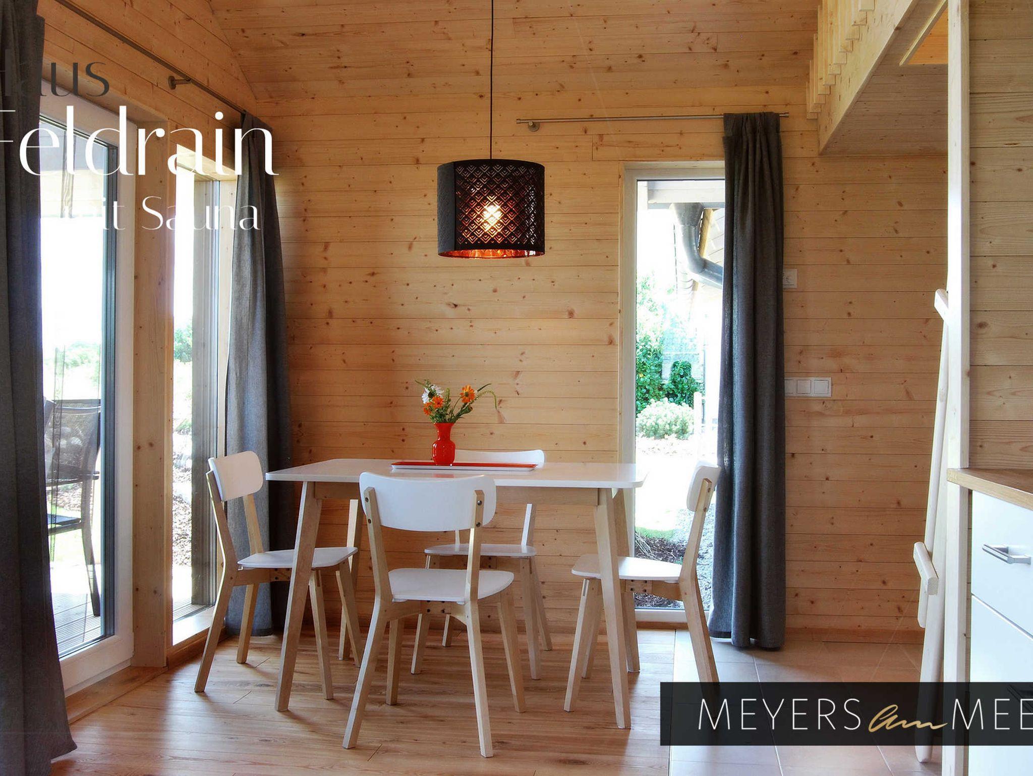 Sie mieten das ca. 60 Quadratmeter große Häuschen Z7. Herzstück darin ist die offene Wohnküche - schon beim Frühstück können Sie durch große Glasfronten auf das angrenzende Feld blicken. Im Wohnbereich können Sie auf einem Sofa oder zwei Relaxsesseln entweder vor dem SAT TV entspannen, ein schönes Buch lesen oder einfach nur aufs Feld schauen. Bodenlange Vorhänge schirmen die Sonne ab. Der Holzfußboden sorgt für eine angenehme Atmosphäre, maßangefertige Einbaumöbel schaffen Platz auf kleinem Raum. Geheizt wird mittels Erdwärme, Strom kommt von Greenpeace Energy.