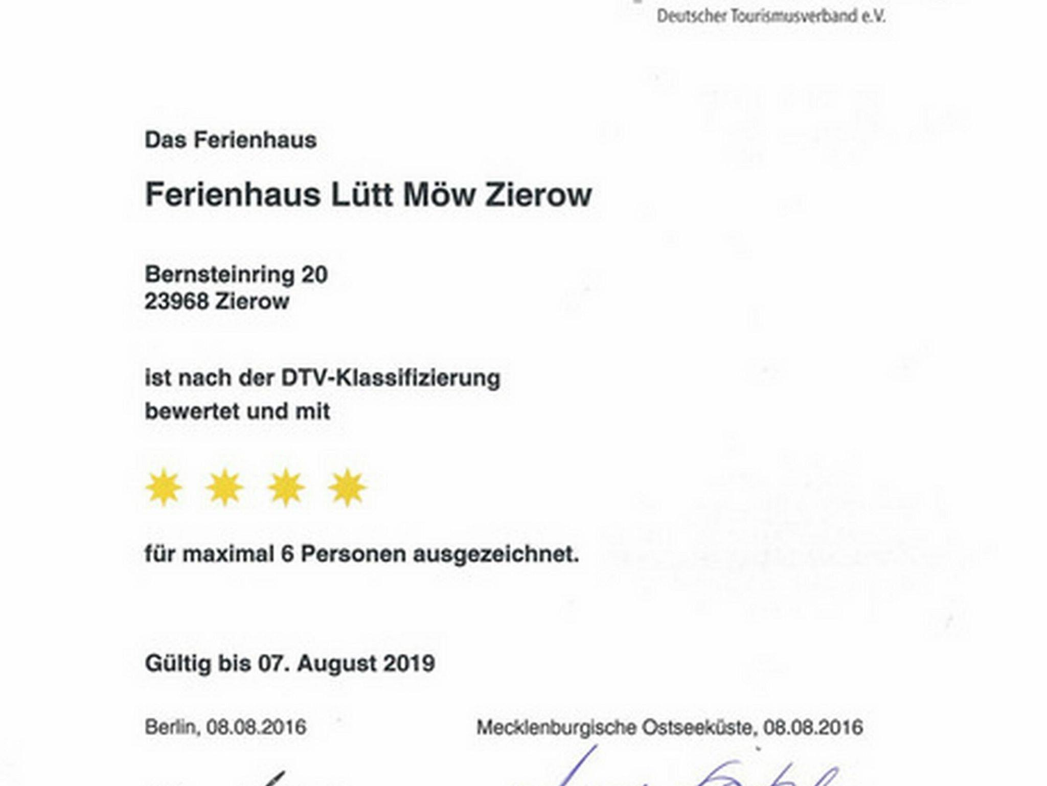 Beide Häuser wurden vom Deutschen Tourismusverband e.V. (DTV) mit jeweils 4 Sternen klassifiziert.