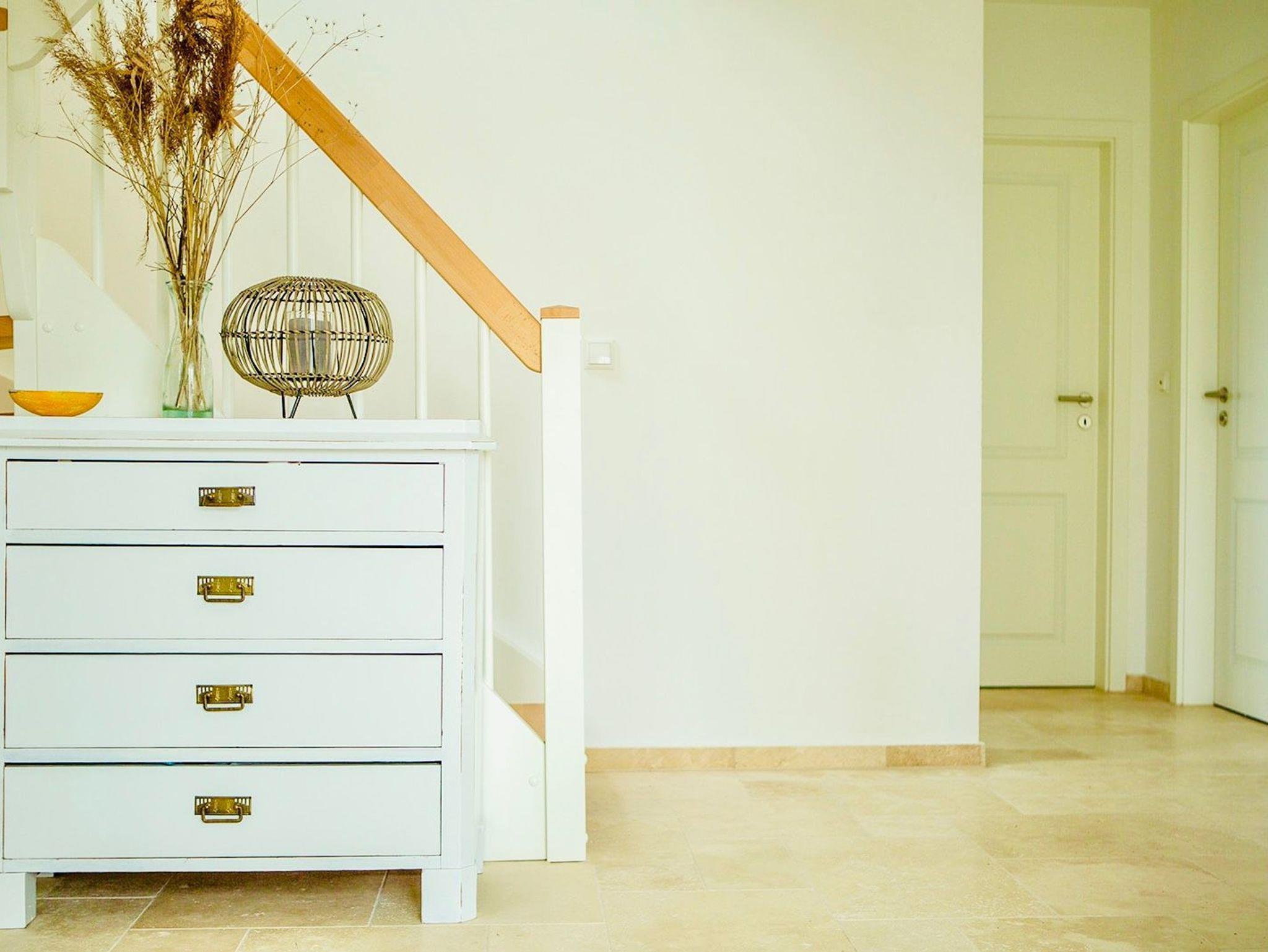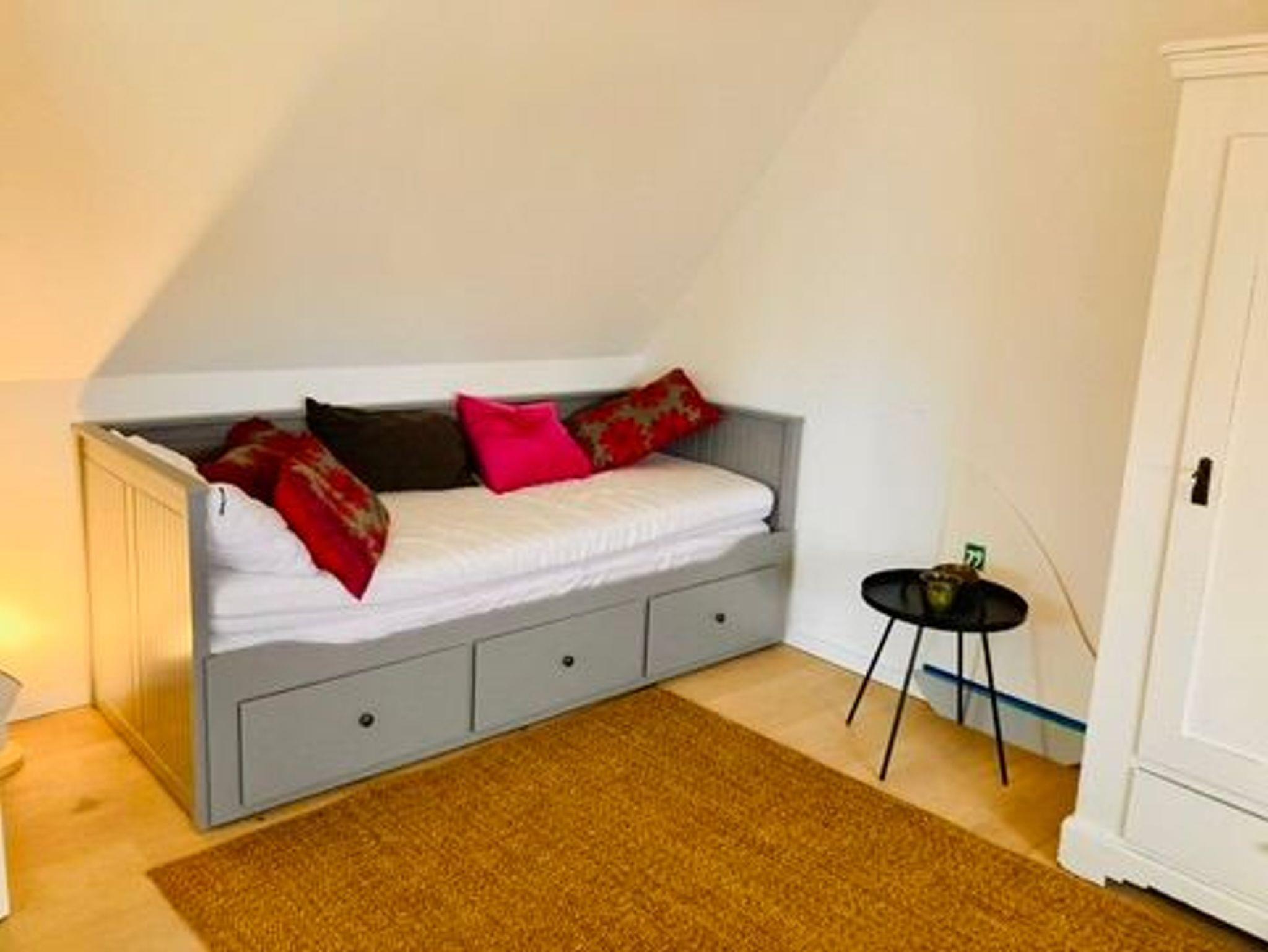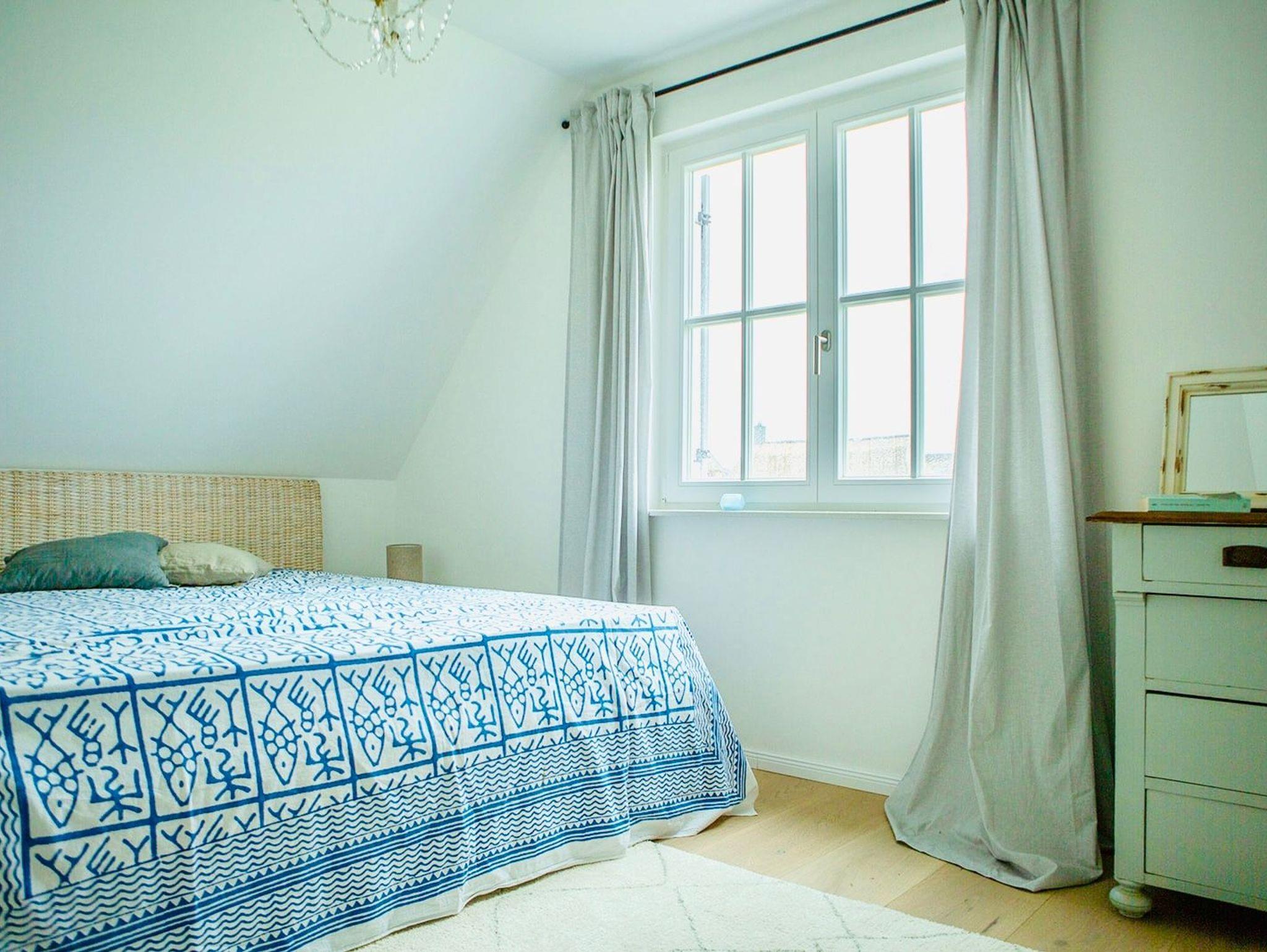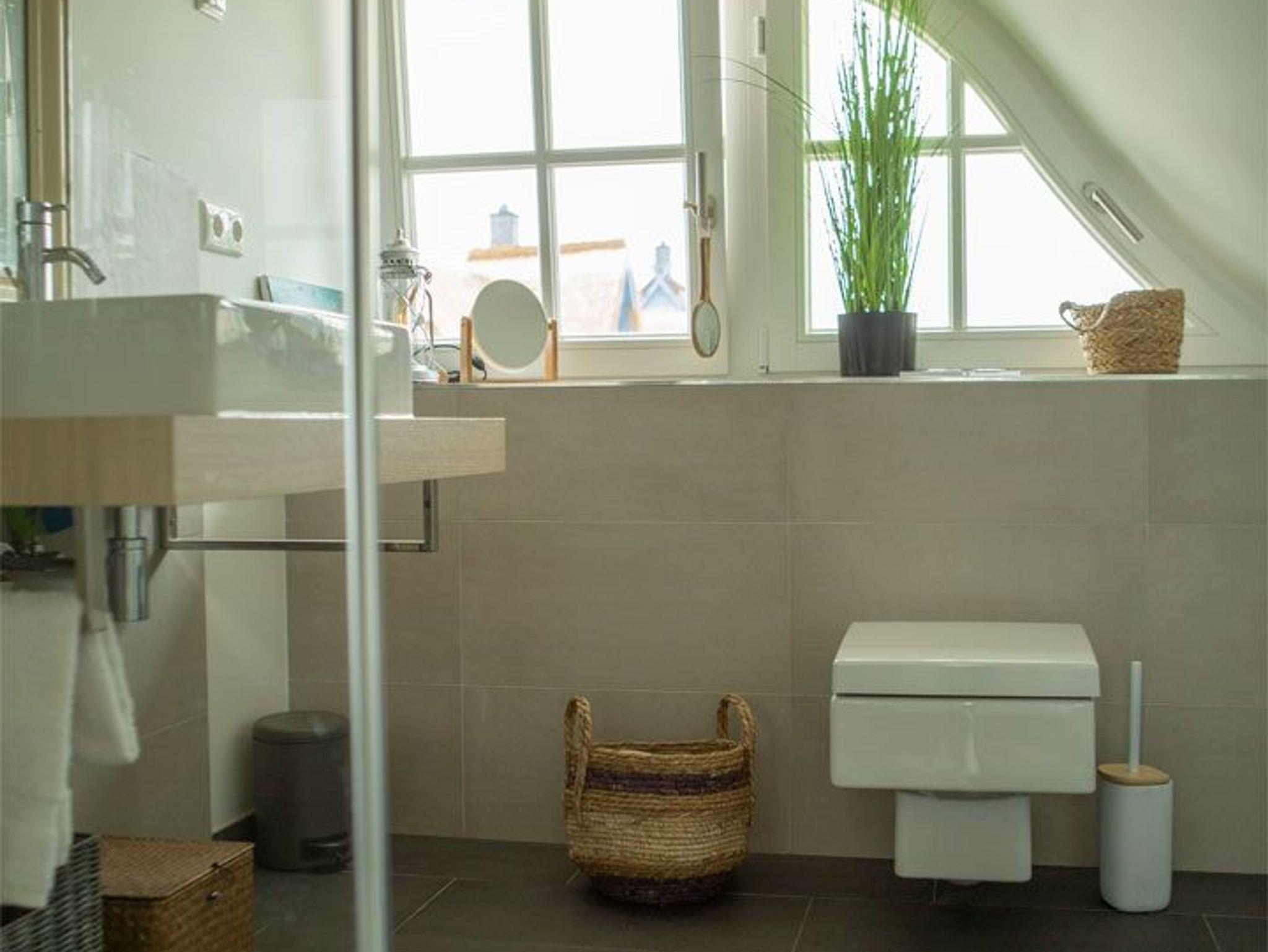 Die Treppe hinauf geht es zu den beiden gemütlichen Schlafzimmern und einem großzügigen Duschbad mit Handtuchheizung. Ein Schlafzimmer ist mit einem 160er Doppelbett ausgestattet, in dem zweiten Schlafzimmer finden Sie ebenfalls ein 160er Doppelbett sowie ein ausziehbares Tagesbett. Insgesamt bietet das Haus Platz für bis zu 4 Erwachsene oder eine Familie mit 3 Kindern.