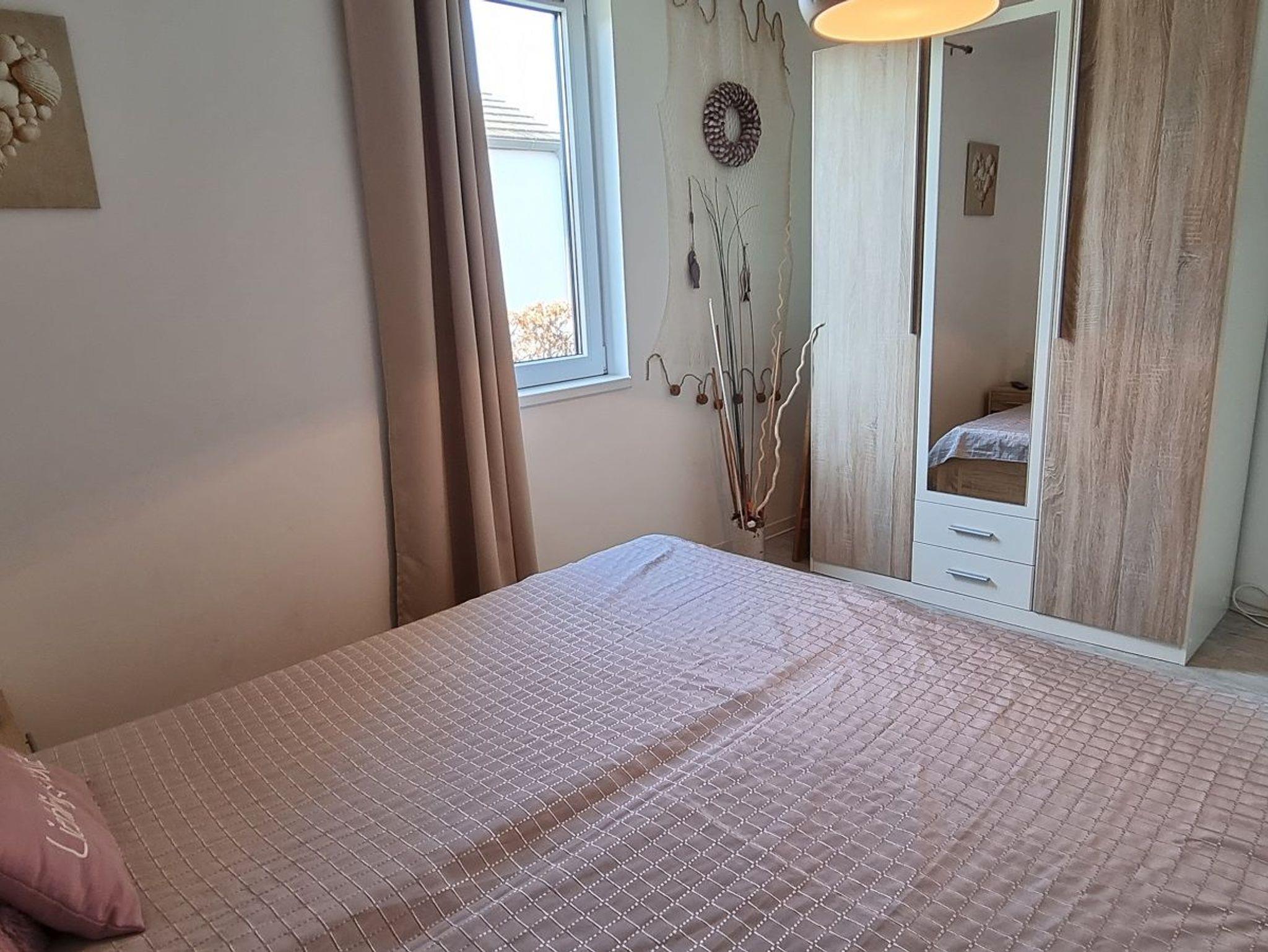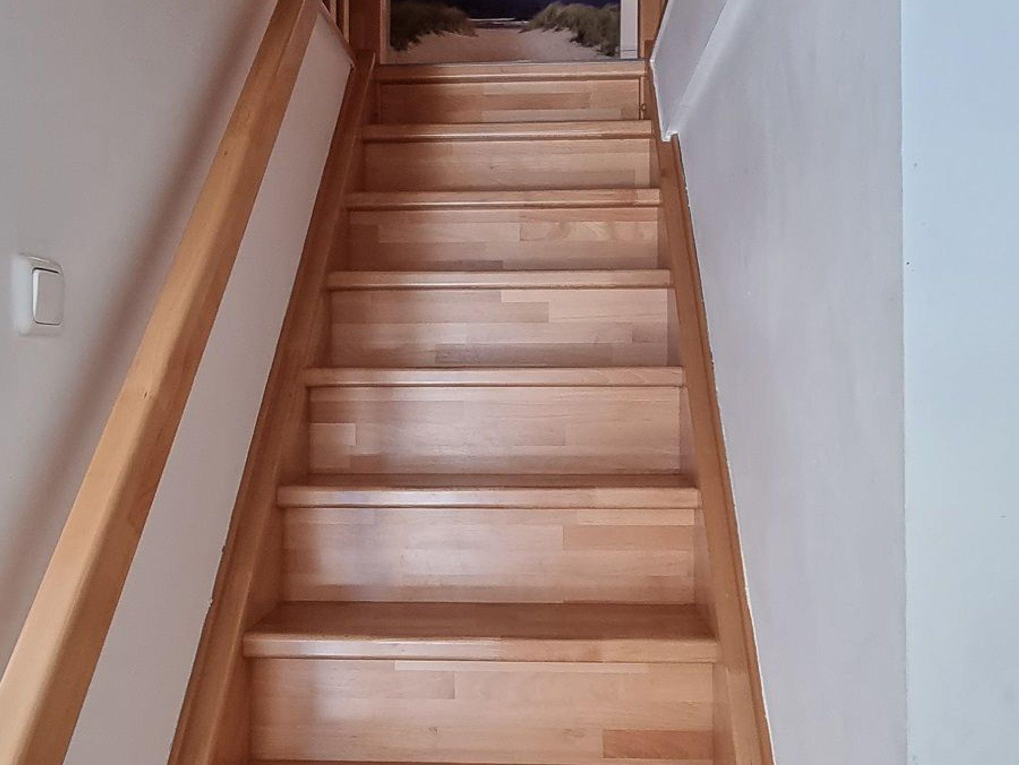 Dir ruhig gelegene Terrasse liegt zur Süd-Westseite des Ferienhauses, von dort aus haben Sie Zugang zum großen Wohn- Essbereich. Die Küche ist modern und offen gestaltet. Im Erdgeschoss befinden sich des Weiteren zwei Schlafzimmer mit je einem Doppelbett und Kleiderschrank. Die Zimmer lassen sich mit Vorhängen verdunkeln. Ein 2. TV steht in einem Schlafzimmer zur Verfügung. Das Badezimmer im Erdgeschoss ist mit Dusche, Waschbecken und WC ausgestattet.