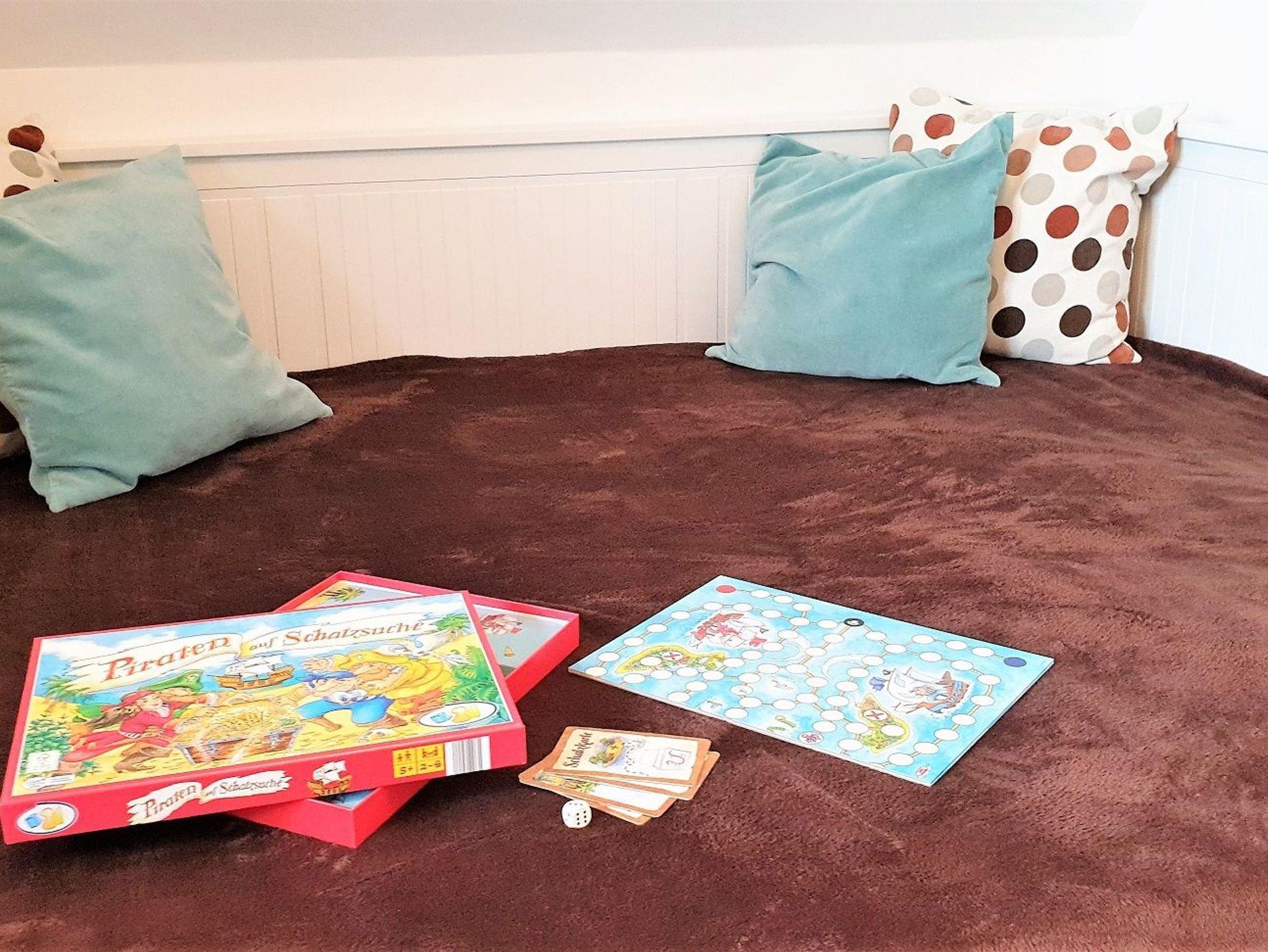Eine Auswahl an Filmen, Büchern und Gesellschaftsspielen ist vorhanden.