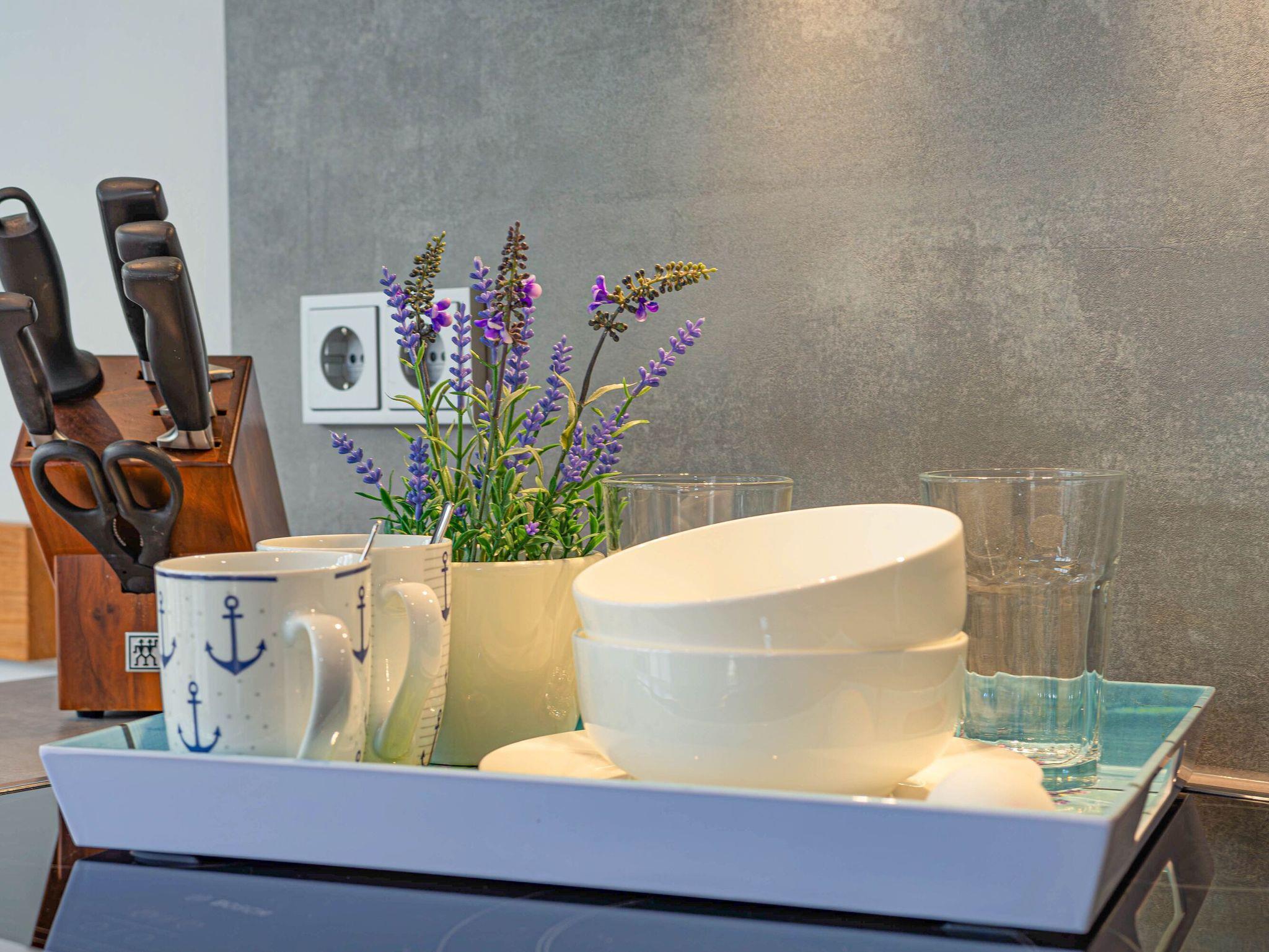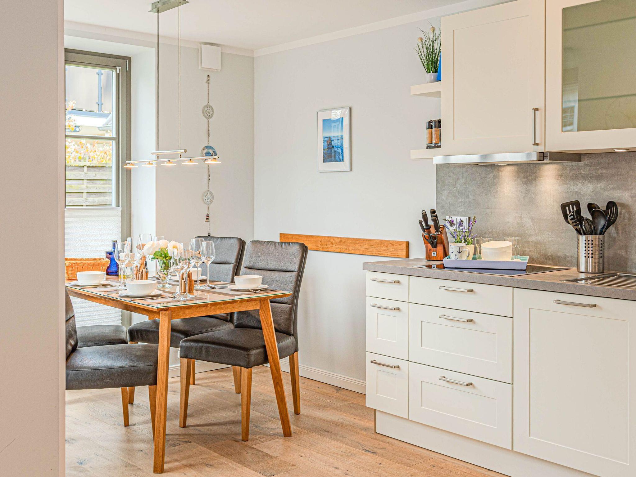 Die Ferienwohnung Wellenflüstern besticht durch ihre hochwertige Ausstattung und das stilvolle Ambiente. Der offene Wohn- und Essbereich mit Gaskamin lädt zu gemütlichen Stunden ein, während die voll ausgestattete Küche keine Wünsche offenlässt. Die beiden Schlafzimmer bieten erholsamen Schlafkomfort, und das moderne Badezimmer sorgt für einen angenehmen Start in den Tag.