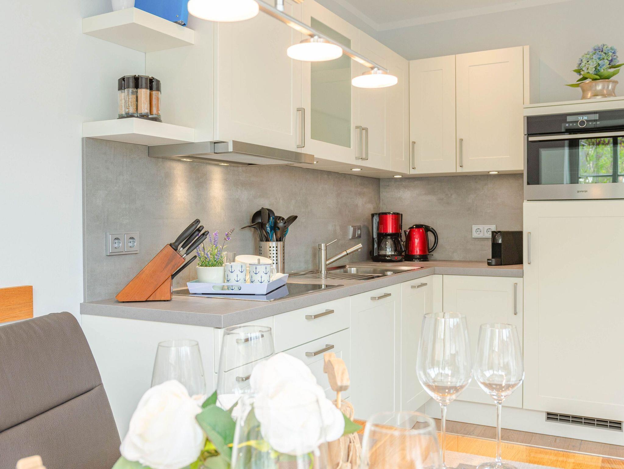 • Voll ausgestattete Küche mit modernen Geräten, einschließlich Geschirrspüler und Kaffeemaschine