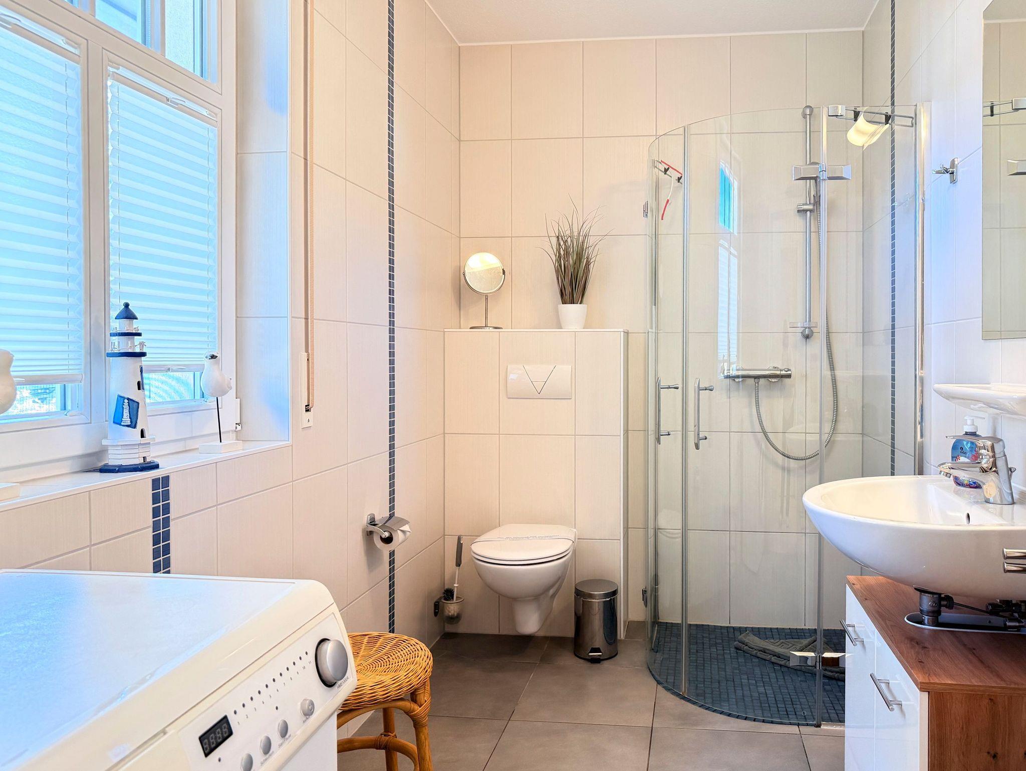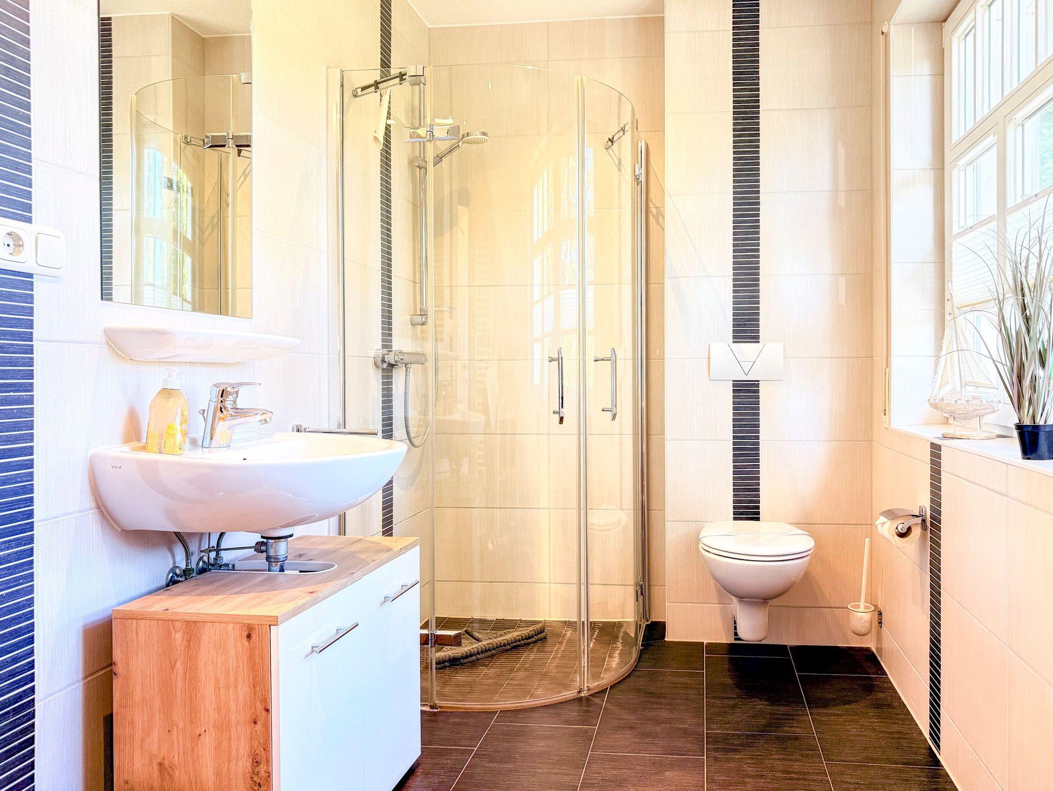 • Zwei moderne Badezimmer mit Dusche, Haartrockner und Fußbodenheizung