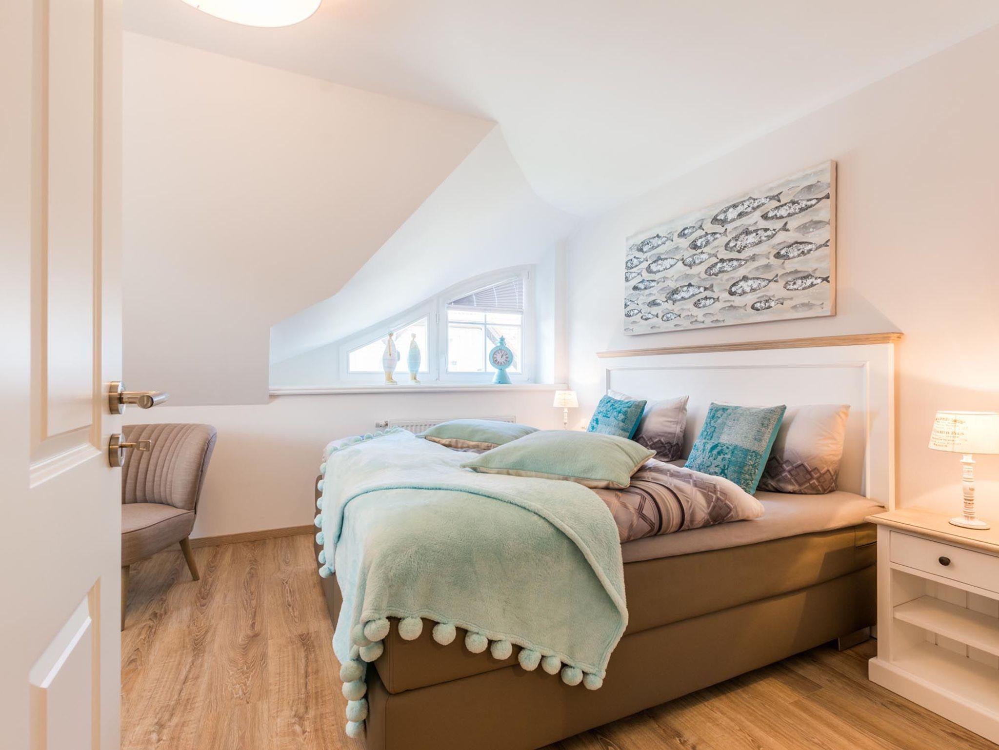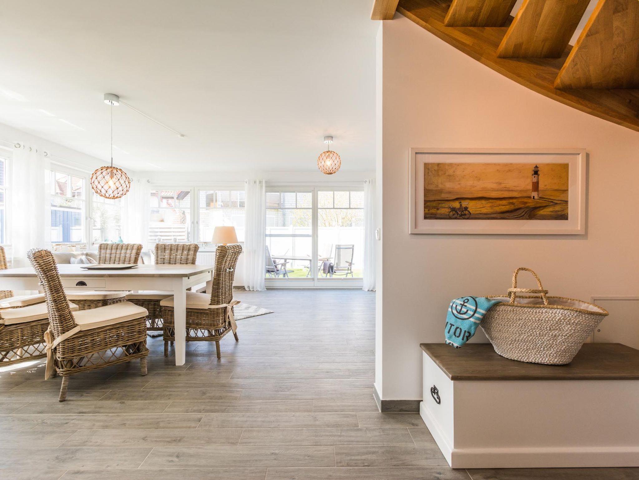 Durch die perfekte Raumaufteilung der 3 Schlafzimmer, 2 Bäder (1x mit Badewanne) und dem großen Wohn-Essbereich ist genügend Platz für 6 Personen vorhanden. 94qm verteilt auf 3 Etagen, hier kann man gut urlauben. Erholsamen Schlaf finden Sie gewiss in den hochwertigen Betten (Boxspringbett 180x200, Doppelbett mit 140x200 und zwei Einzelbetten 90x200). Zusätzlich zum Wohnraum sind alle Schlafzimmer mit einem LED-TV ausgestattet. Neben all diesen Annehmlichkeiten, stehen eine Waschmaschine, ein abschließbarer Fahrradschuppen sowie 2 PKW-Stellplätze direkt am Haus zur Verfügung.