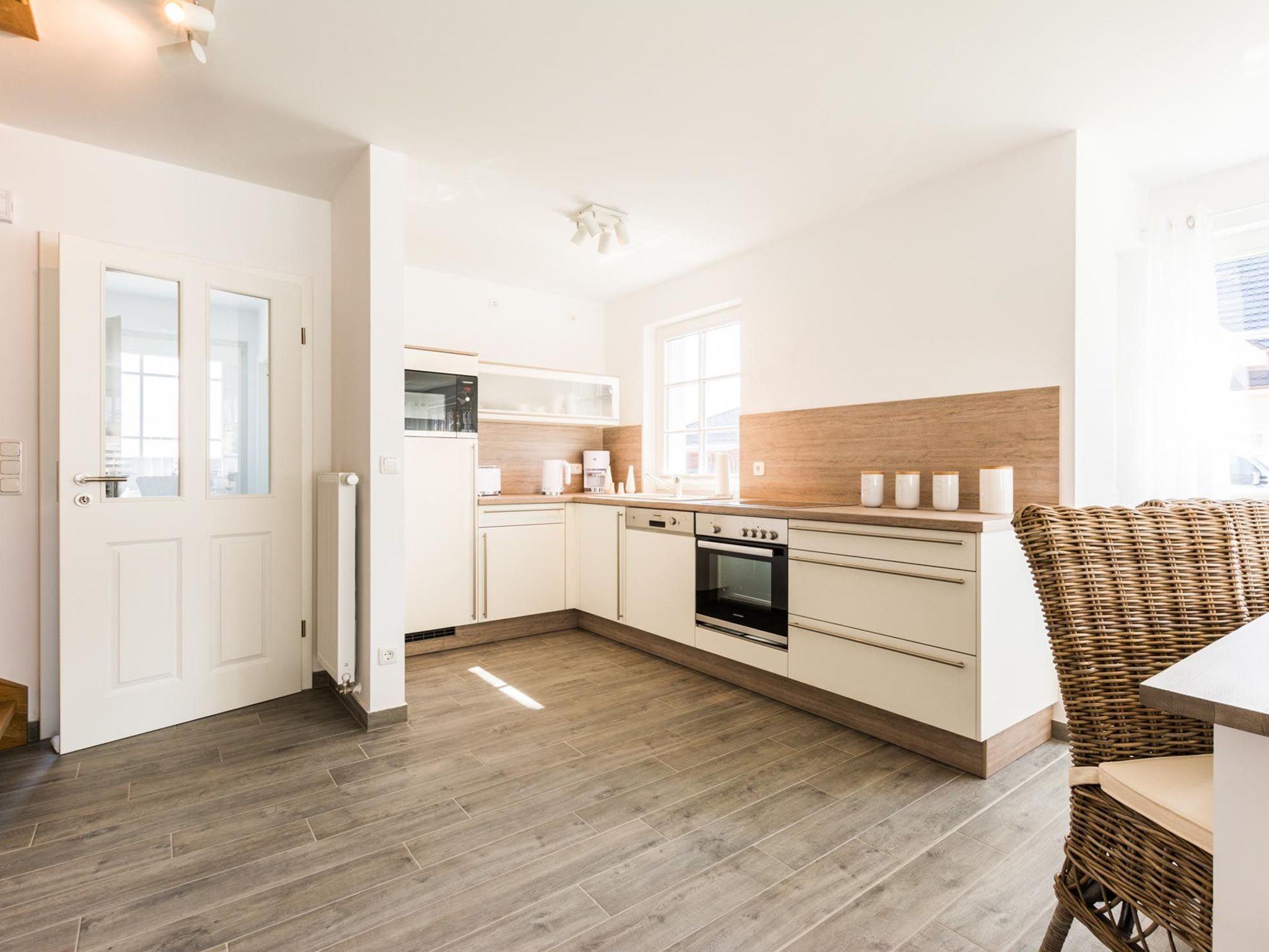 In dieser Doppelhaushälfte in Zingst finden Sie die gewünschte Erholung und Ruhe. Der großzügige Wohnraum mit Kochnische lädt zum Verweilen ein. Die Küche mit hochwertigen E-Geräten ist komplett ausgestattet. Ob Toaster, Wasserkocher, Kaffeemaschine oder Mikrowelle - es ist alles vorhanden. Am großen Esstisch können Sie entspannt speisen und gesellig zusammen sitzen.