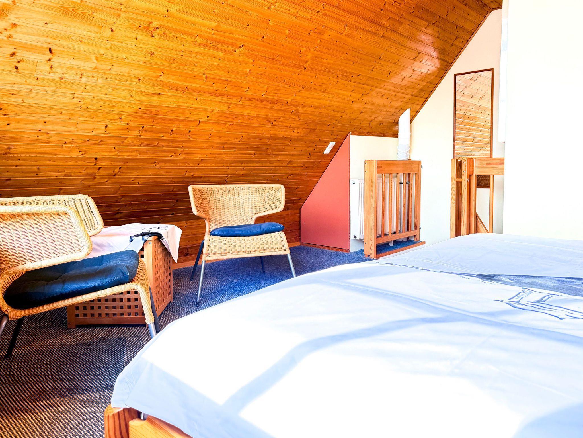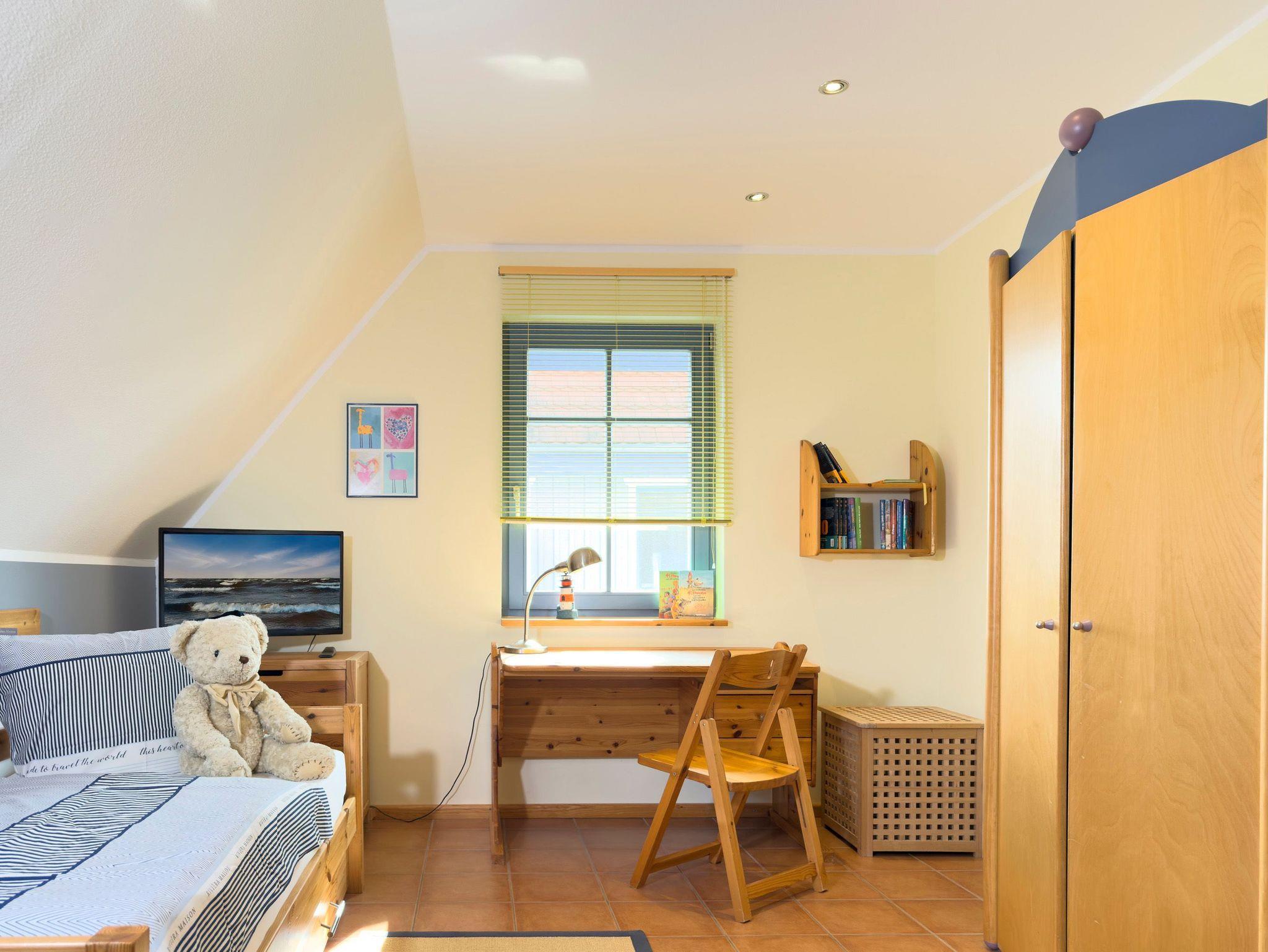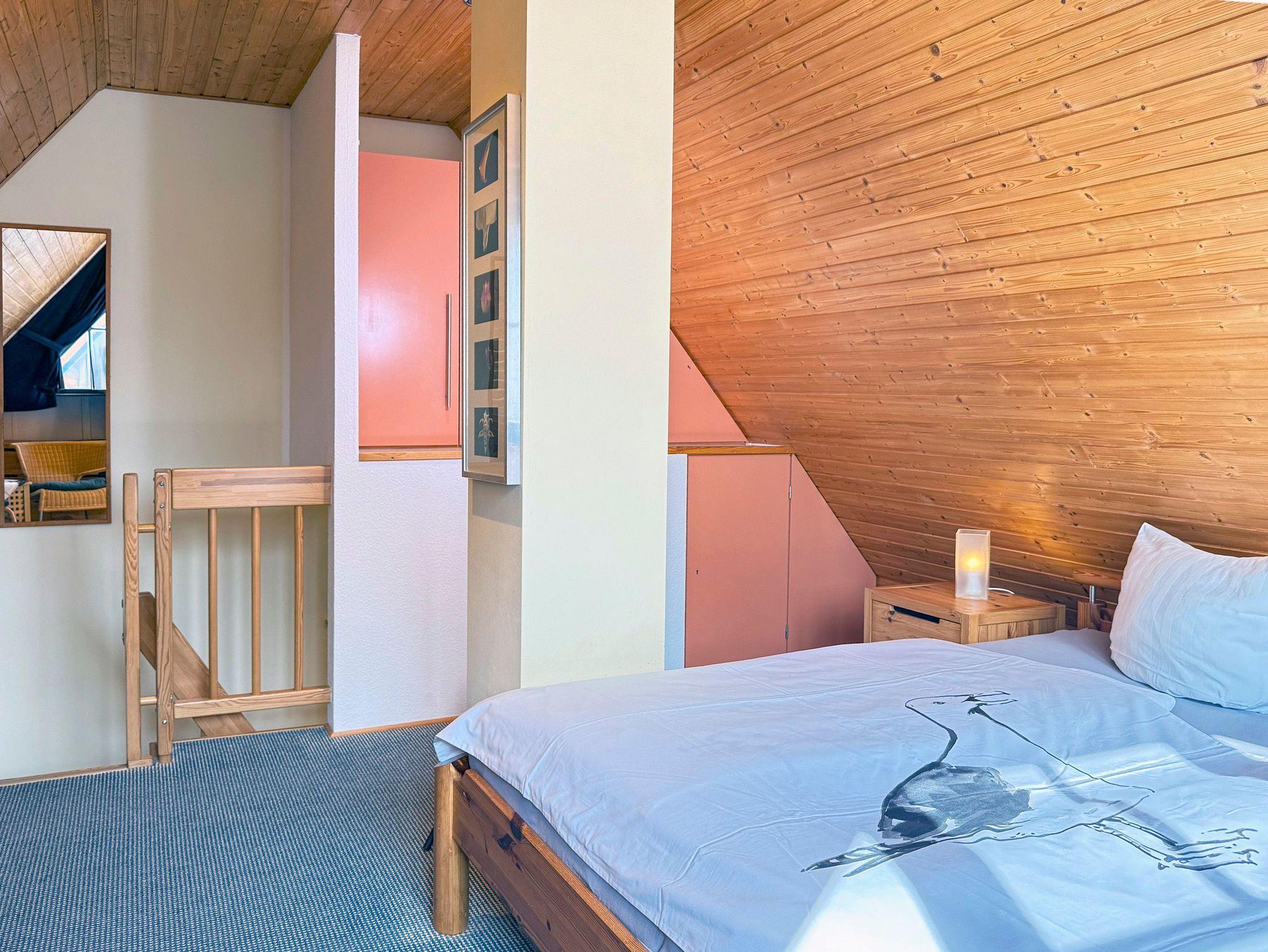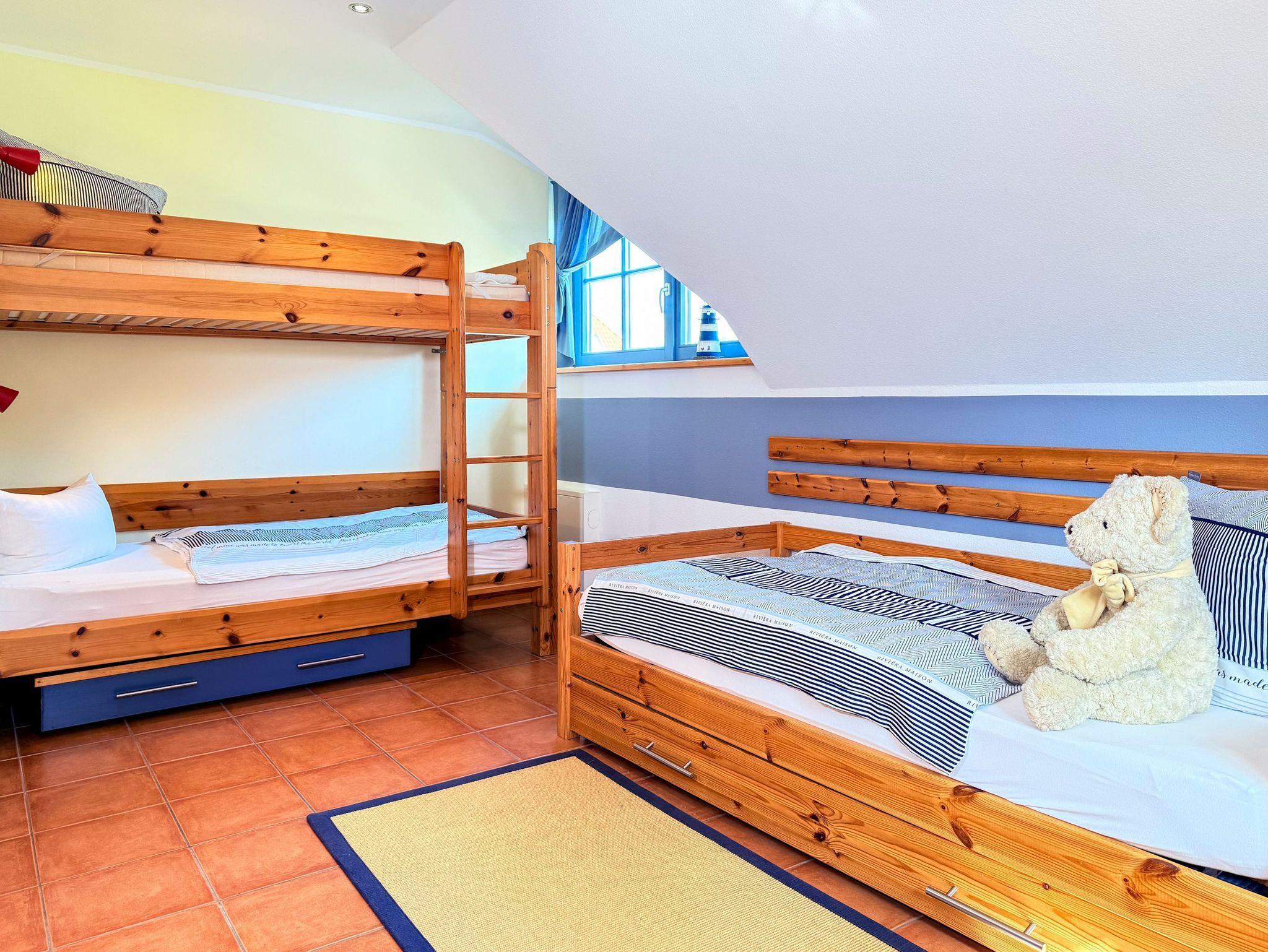 Die drei Schlafzimmer verteilen sich auf zwei Etagen und bieten Rückzugsorte für erholsame Nächte. Besonders praktisch: Zwei der Schlafzimmer verfügen über eigene Fernseher, und das Etagenbett im Kinderzimmer sorgt für Freude bei den kleinen Gästen.