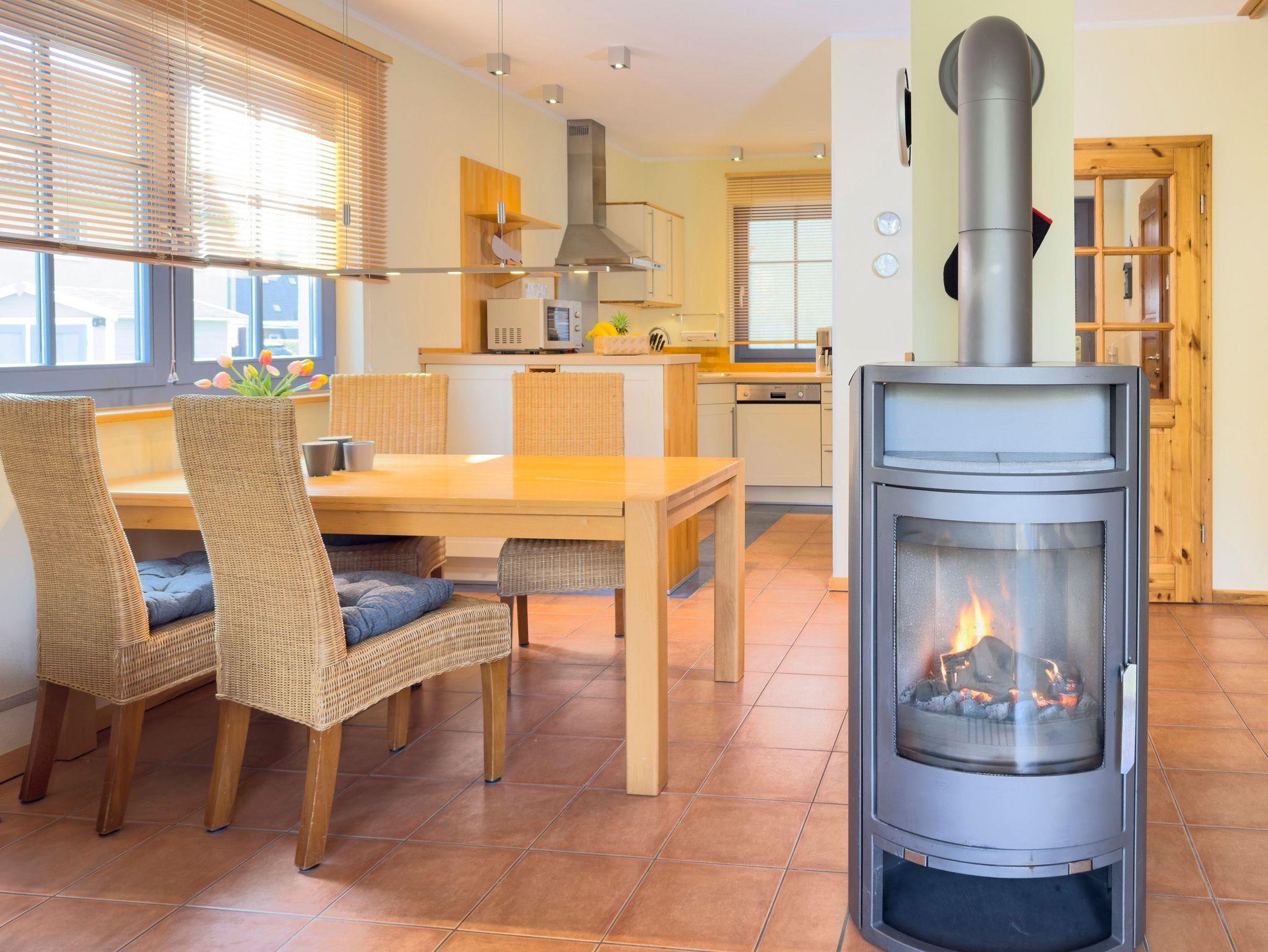 Das Ferienhaus Sonnenschein empfängt Sie mit einem offenen Wohnkonzept, das durch bodentiefe Fenster viel Tageslicht hereinlässt. Der Wohnbereich mit Kaminofen lädt zu entspannten Abenden ein, während die angrenzende Küche mit modernen Geräten zum gemeinsamen Kochen animiert.