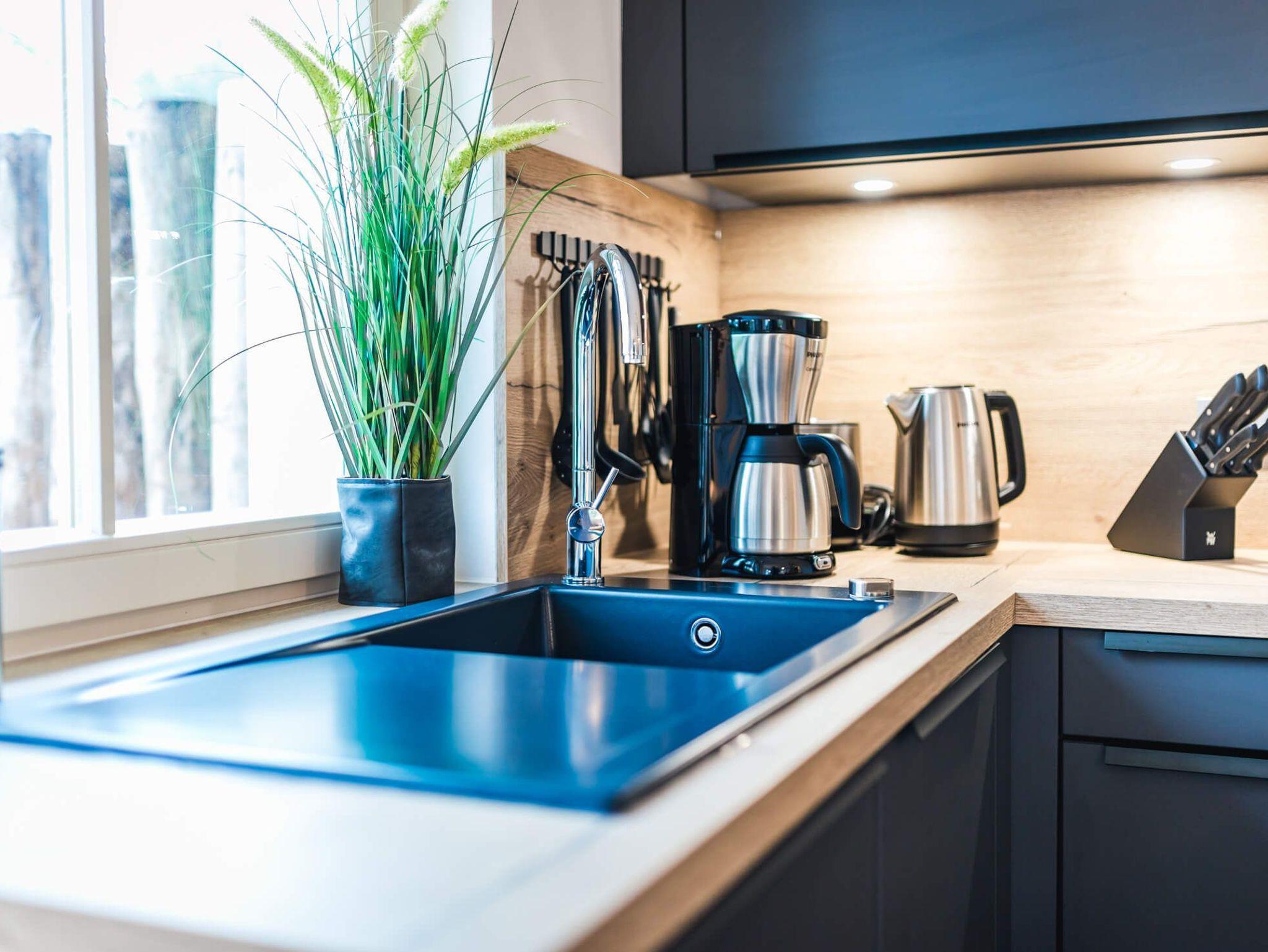 So finden Sie in Ihrem Feriendomizil einen großzügigen Wohn-/Essbereich. Dieser besticht durch bodentiefe Fenster und einen Holzesstisch, an dem die ganze Familie Platz findet. Die angrenzende, moderne und hochwertig ausgestattete Küche hat alles, was das Herz jedes Hobbykoches höher schlagen lässt. Kaffeeliebhaber werden darauf hingewiesen, die Kapseln für die vorhandene Nespressomaschine mitzubringen.