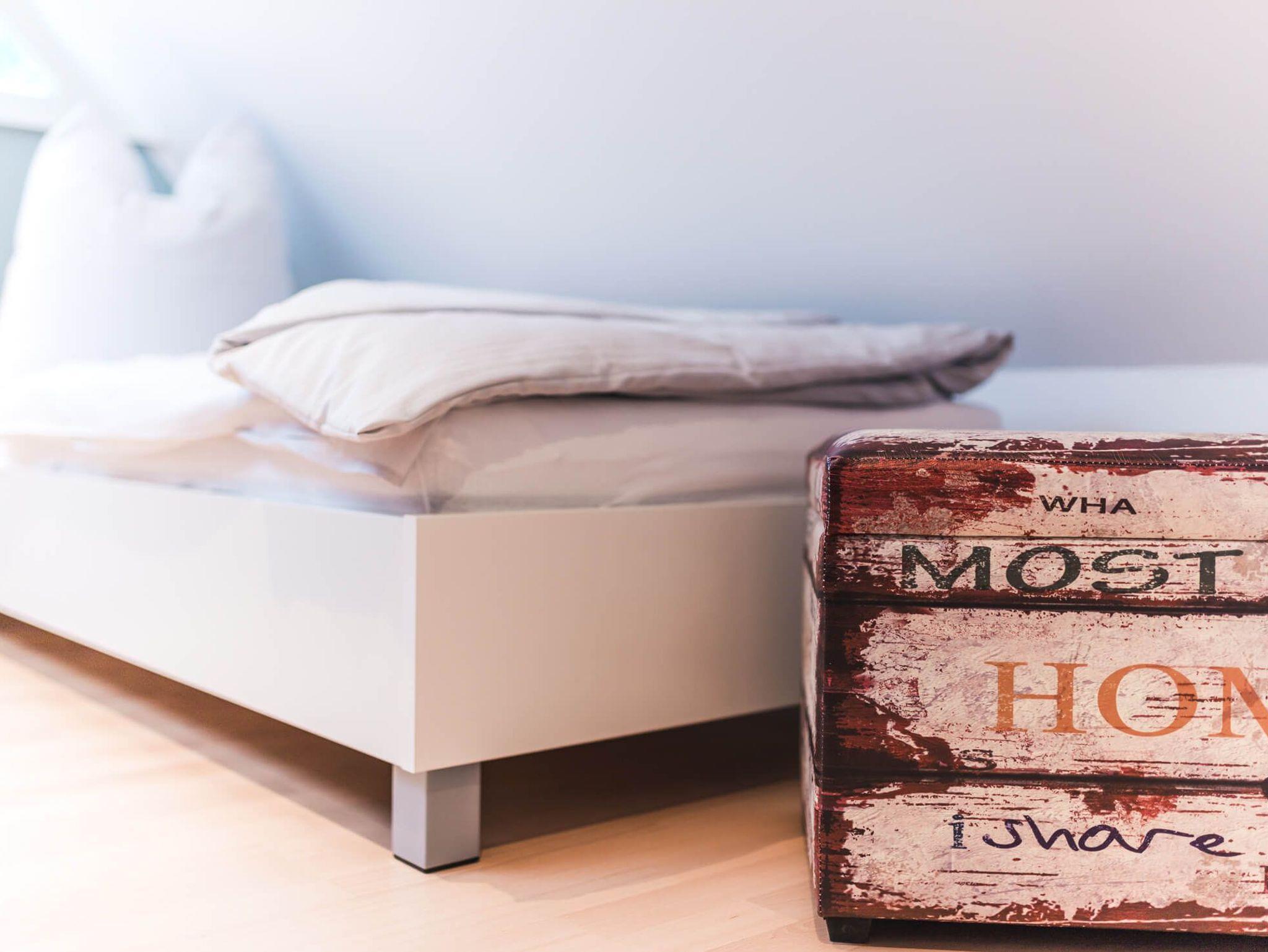 Damit sich möglichst alle Gäste wohlfühlen können, sei darauf hingewiesen, dass verschiedene Varianten an Kissen und Decken im Haus zur Verfügung stehen. Weiterhin wurde Wert auf die Treppenhausbeleuchtung gelegt, die eine Wohlfühlatmosphäre im ganzen Haus verbreitet.